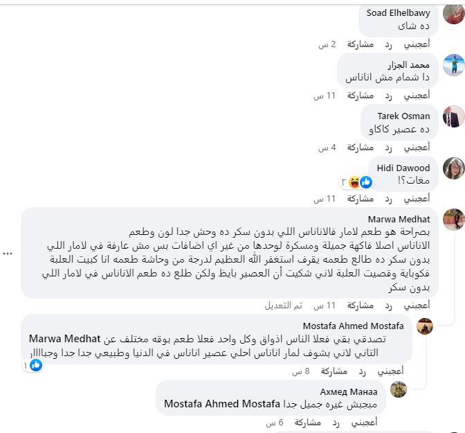 وتوالت التعليقات الساخرة من منتج lamar على الشكوي وجاءت " ده شمام مش أناناس"،" ده عصير كاكاو"،" ده طعمه وحش"،" ده عدس مبروك الناس دي عارفة مصلحتك في الشتا انت محتاج عدس مش اناناس".