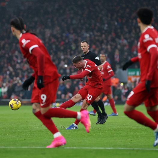 وأحرز الهولندي كودي جاكبو هدفين، كما هز الكولومبي لويس دياز الشباك أيضا، فيما سجل النجم الدولي المصري محمد صلاح هدفا من ركلة جزاء، ليصل لهدفه رقم 199 في مسيرته مع ليفربول، كما قام بتمريرة حاسمة أيضا خلال اللقاء، الذي جرى على ملعب (آنفيلد).