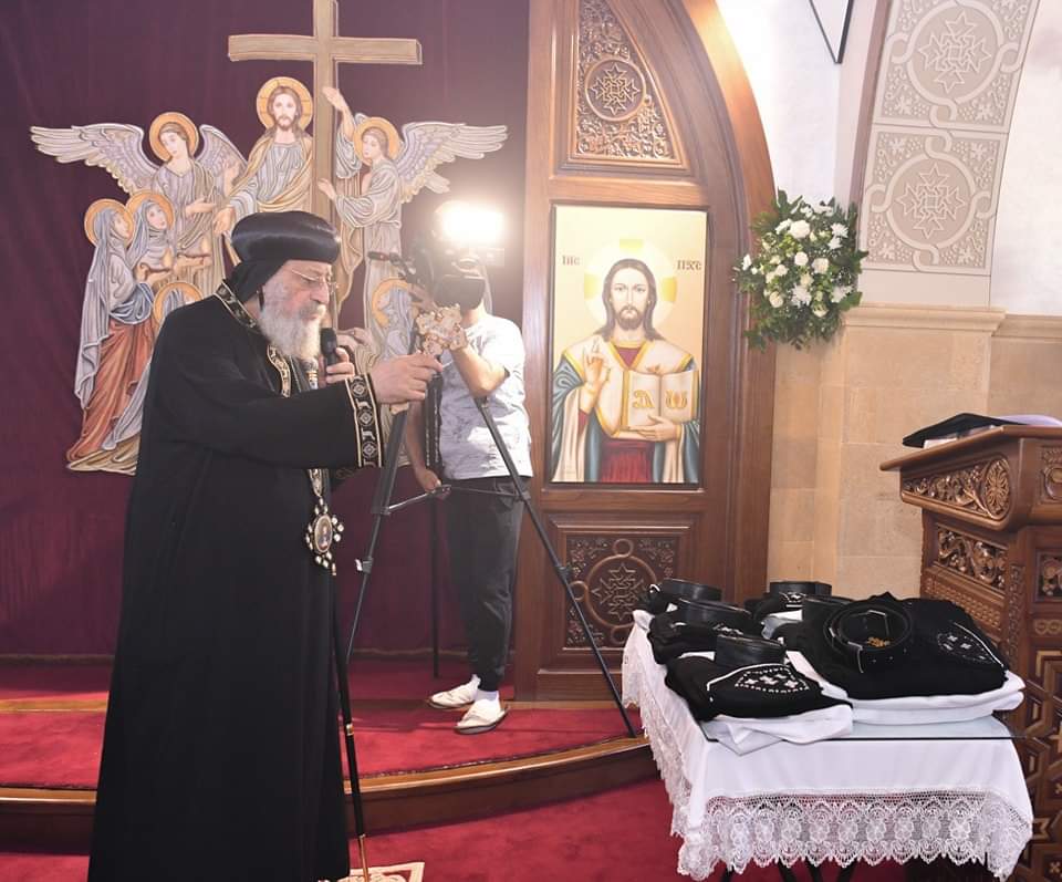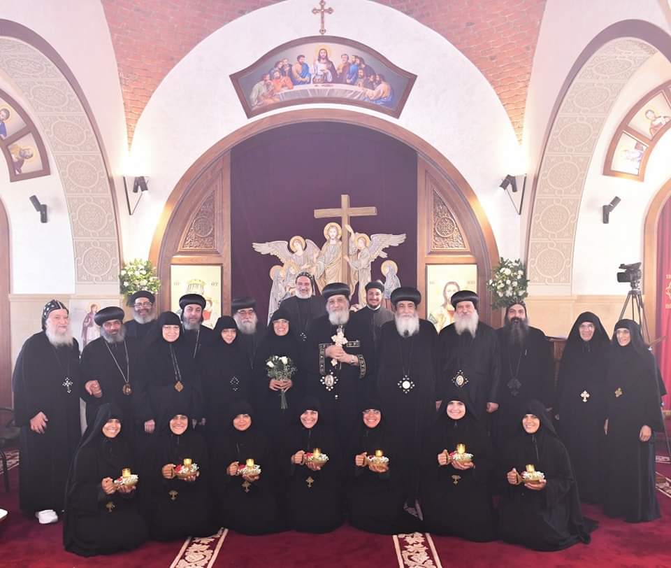 وصلى قداسته صلوات رهبنة طالبات الرهبنة السبع بعد اجتيازهن فترة الاختبار المقررة وشاركه خمسة من الآباء الأساقفة.