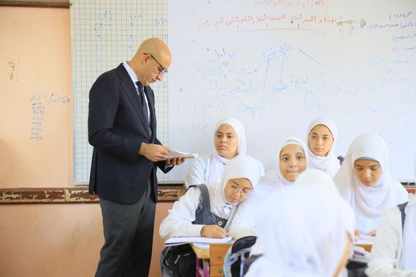 وخلال زيارة مدرسة الشهيد اللواء أحمد زكى لطيف الإعدادية بنات" التى تضم عدد ٥٦٨ طالبة، حرص الوزير والمحافظ على حضور طابور الصباح، والاستماع للإذاعة المدرسية، ثم تفقدا الفصول؛ للاطمئنان على انتظام سير العملية التعليمية بالمدرسة، ونسب الكثافات الطلابية، ومتابعة كراسات الحصة والواجب للطالبات، ومدى التزامهن بأداء الواجبات المدرسية، كما أجرى الوزير حوارًا مع عدد من المعلمات حول أساليب التدريس، وآليات أداء الطالبات الواجبات والتقييمات المدرسية داخل الفصول.