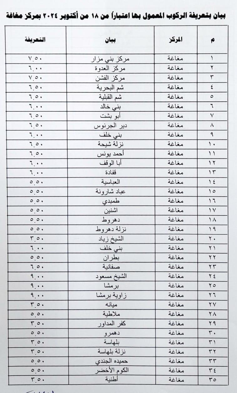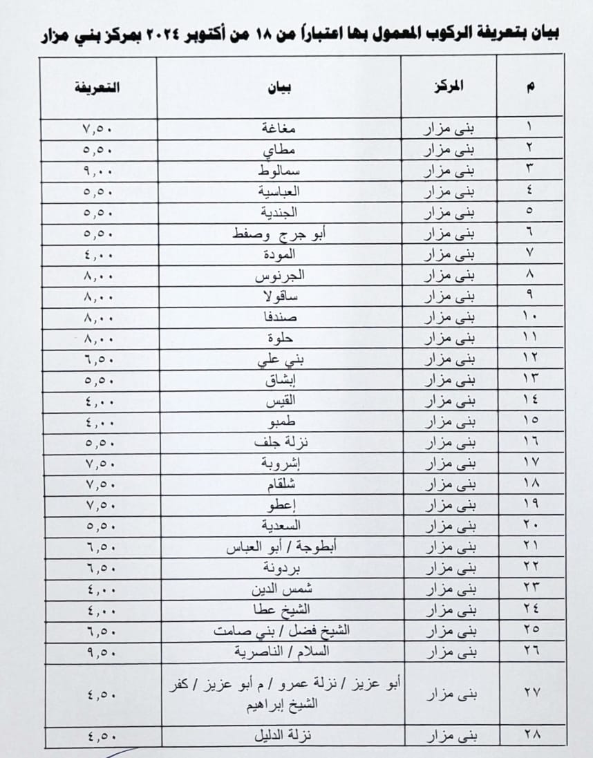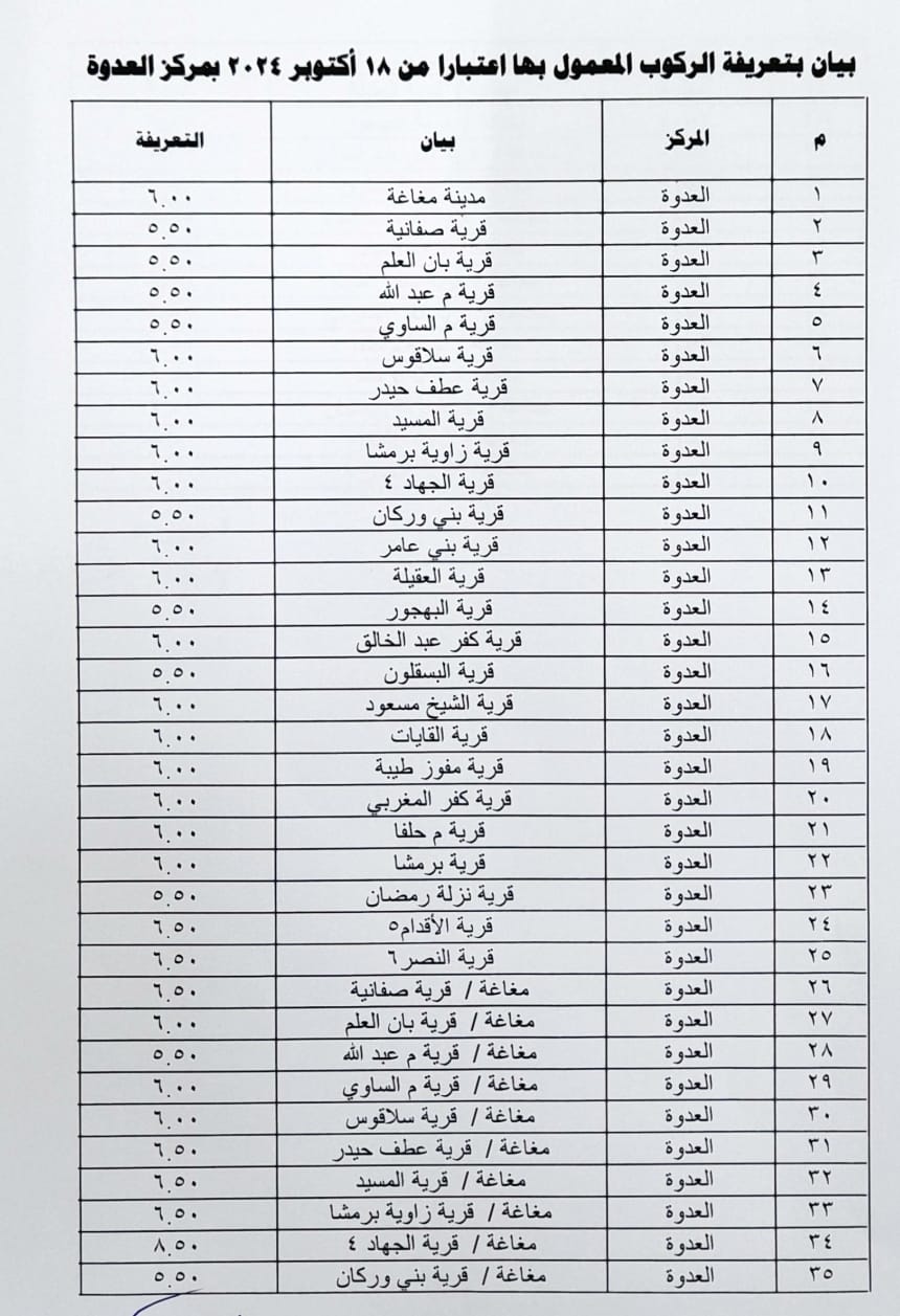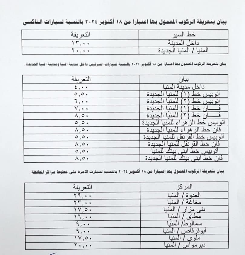 أسعار تعريفة الركوب الجديدة في المنيا 2024