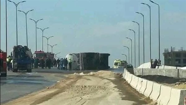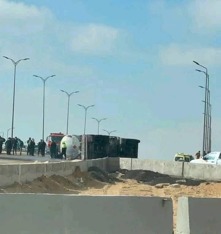انقلاب سيارة نقل محملة بالوقود أعلى محور حسب الله الكفراوي