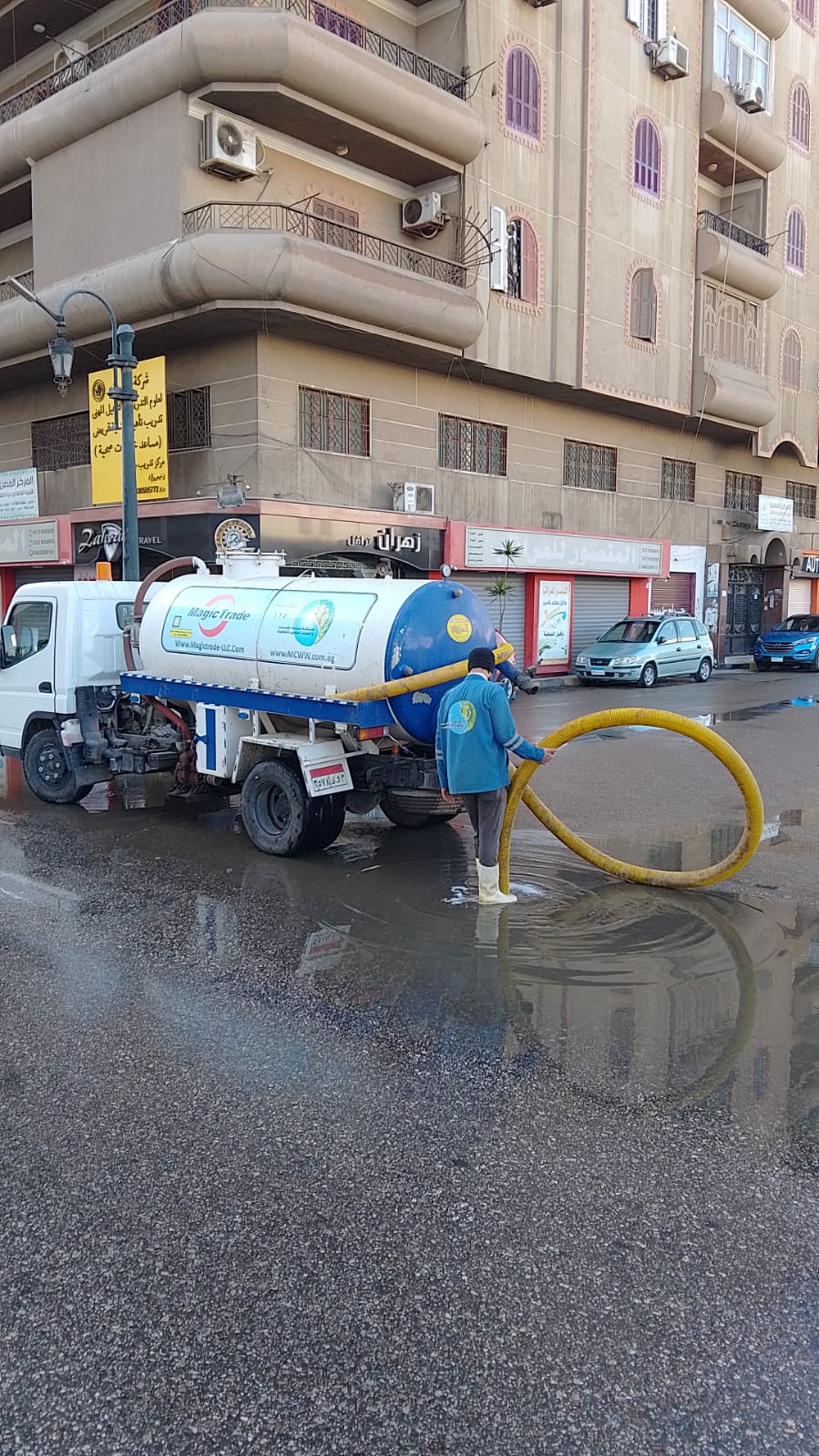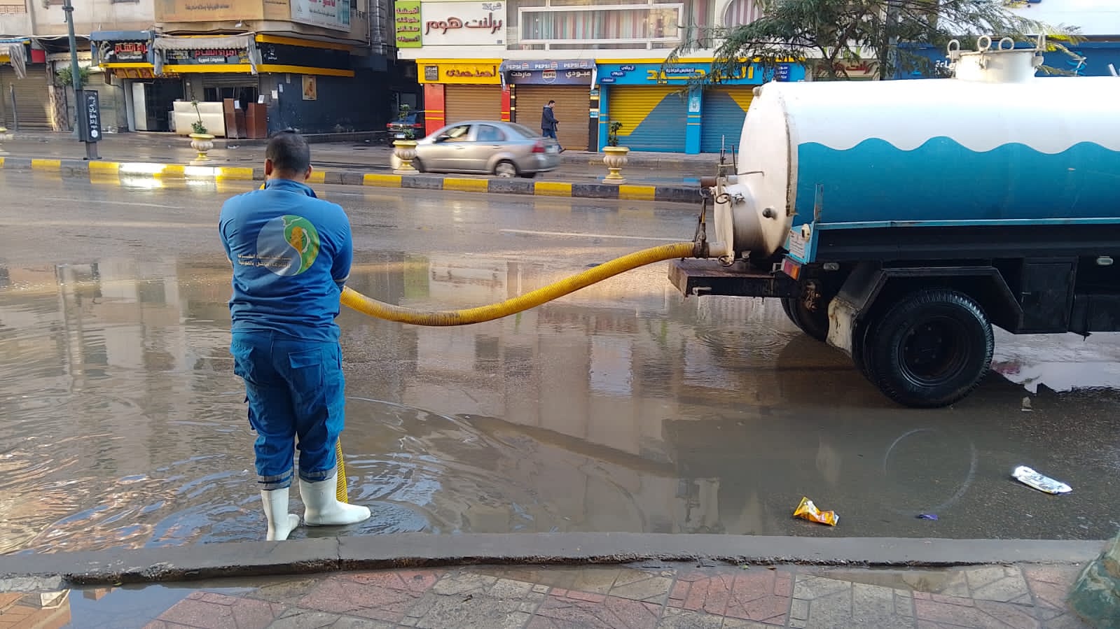 وكلف رؤساء الافرع بمتابعة عملية شفط مياه الأمطار بالشوارع وعلى الفور تم الدفع بالمعدات اللازمة من عربات الكسح وماكينات الشفط بالتنسيق مع الجهات المعنية وتم عمل اللازم وشفط تجمعات مياه الامطار .