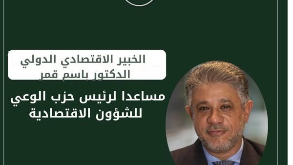 أصدر الدكتور باسل عادل، رئيس حزب الوعي، قرارا بتعيين الدكتور باسم قمر الخبير الاقتصادي الدولي وكبير الاقتصاديين في البنك الأوروبي لاعادة الإعمار والتنمية مساعدا لرئيس الحزب للشؤون الاقتصادية