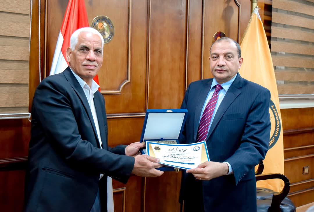 مجلس جامعة بني سويف يكرم أعضاء الجهاز الإداري ممن بلغوا السن القانونية