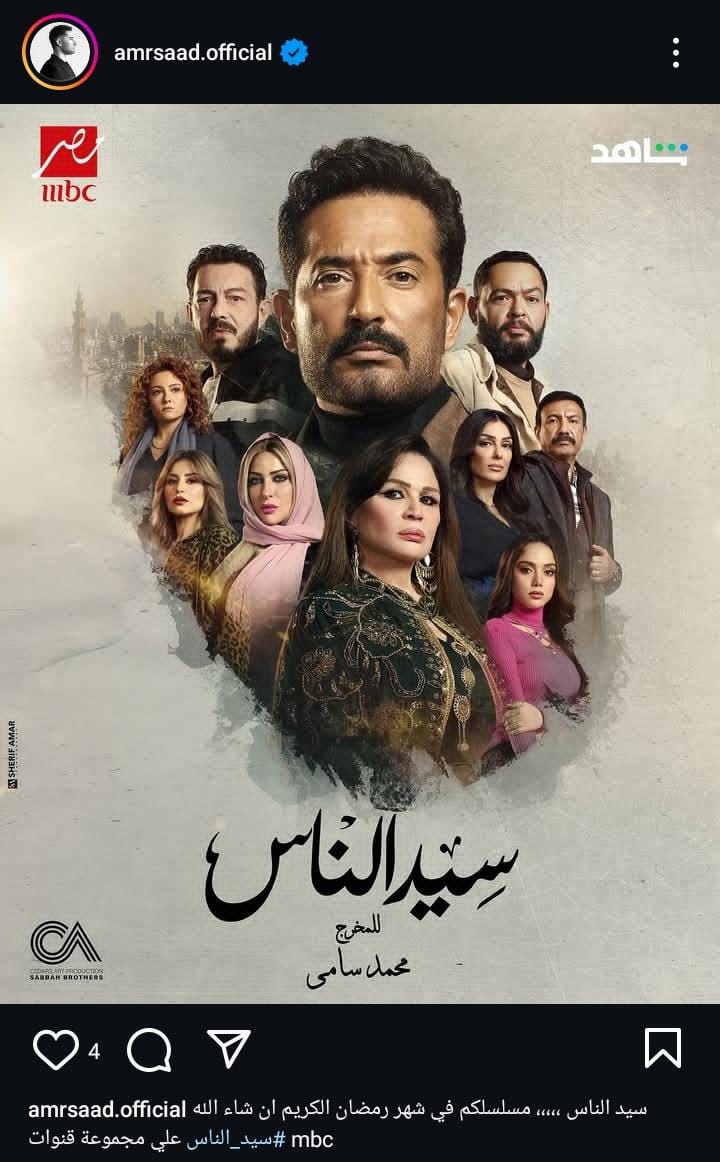 "مسلسلكم في شهر رمضان الكريم".. عمر سعد يروج لـ مسلسل سيد الناس (صورة)