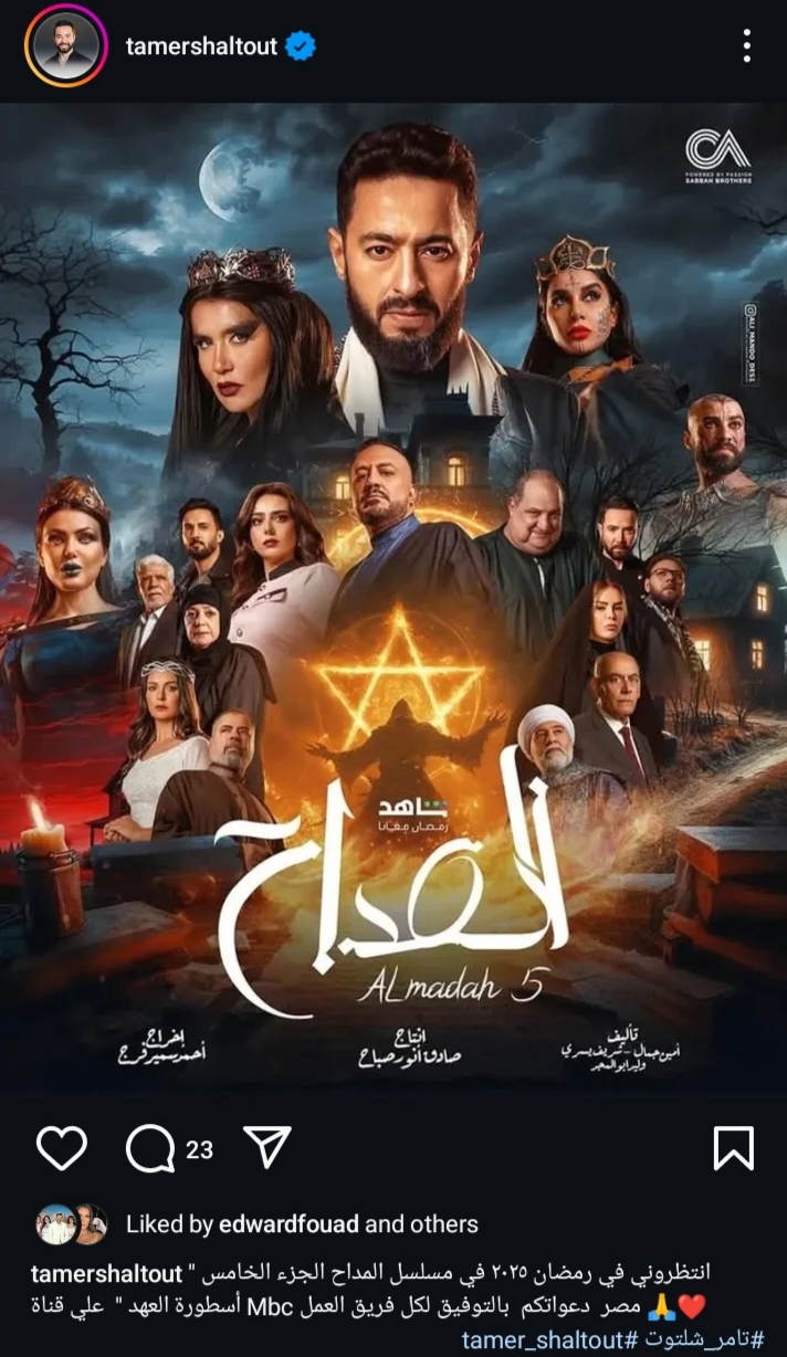 مسلسلات رمضان 2025.. تامر شلتوت يروج لمسلسل المداح 5 (صورة)