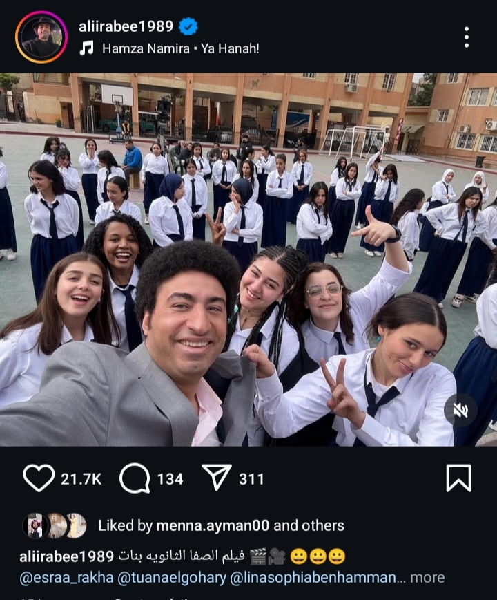 وظهر في الصورة بجانب علي ربيع مجموعة من الوجوه الشابة التي أبرزهم لينا صوفيا، إسراء، توانا، وظهرا وهم يرتديان ملابس مدرسة.