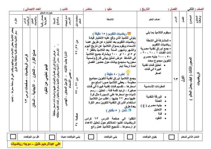 يمكن للمعلمين تحميل دفتر تحضير الرياضيات للصف الثاني الابتدائي الترم الثاني بصيغة PDF من خلال الروابط المتاحة على المواقع التعليمية المذكورة أعلاه، ينصح بالتأكد من تحديث الملفات ومطابقتها للمنهج الحالي قبل استخدامها.