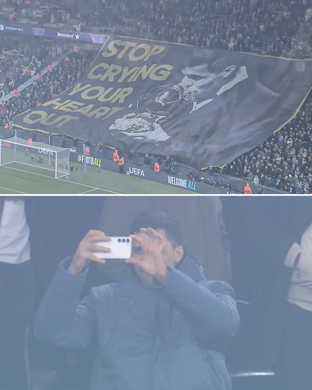 رفع مشجعوا مانشستر سيتي لافتة تتضمن عبارة "توقف عن البكاء من قلبك" بجانب صورة لنجم مان سيتي اللعب رودري، وهو يقبل كأس الكرة الذهبية قبل مباراة دوري أبطال أوروبا ضد ريال مدريد، والذي انتهى بفوز ساحق للأخير.