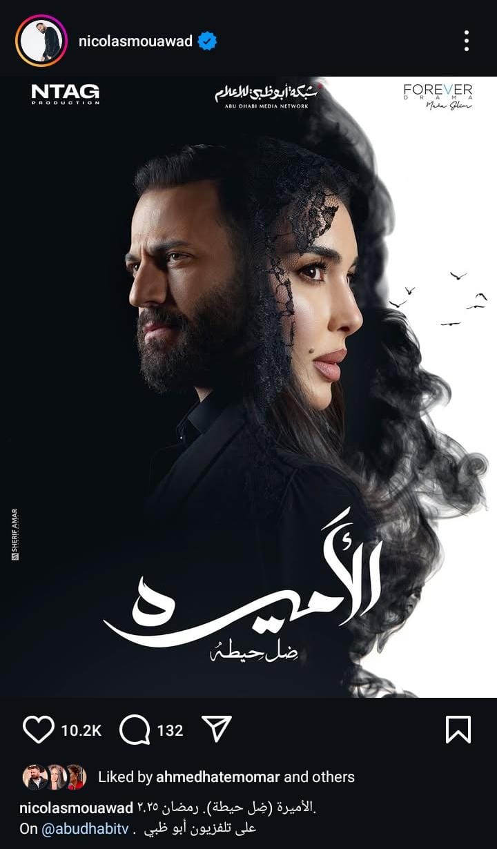 يواصل الفنان نيقولا معوض الترويج لمسلسل الأميرة "ضل حيطة"، حيث طرح البوستر الرسمي الذي يجمعه بالفنانة ياسمين صبري وكشف عن قناة عرضه، وذلك من خلال حسابه الرسمي عبر موقع تبادل الصور والفديوهات القصيرة “إنستجرام”، وعلق: “ الأميرة (ضل حيطة) رمضان 2025 علي تلفزيون أبو ظبي”.