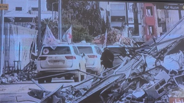 لحظة تسليم كتائب القسام الأسير الإسرائيلي هشام السيد للصليب الأحمر الدولي