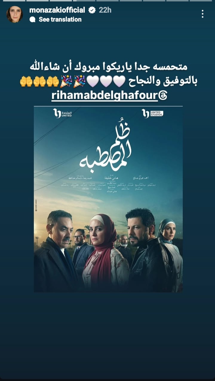 وهنأت ريهام عبد الغفور بمسلسلها ظلم المصطبة وعلقت متحمسة جدآ يا ريكو مبروك .