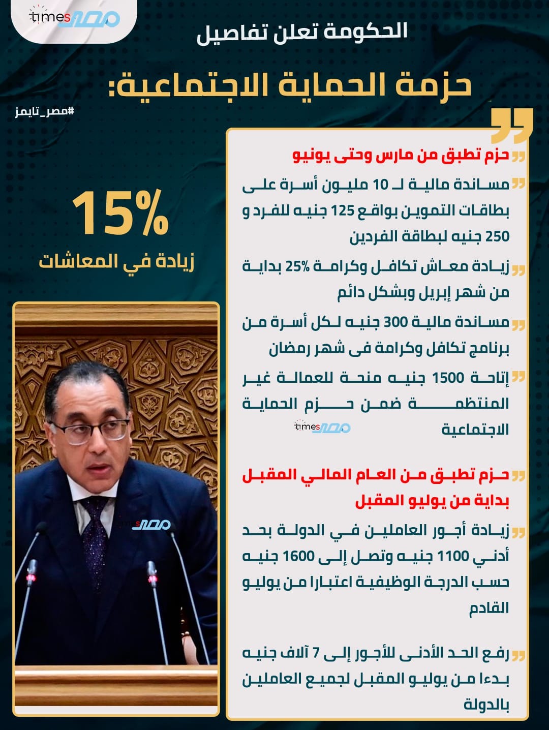والجدير بالذكر أن، الدكتور مصطفى مدبولي، رئيس مجلس الوزراء، كان قد أعلن أن الحكومة بصدد إطلاق حزمة حماية اجتماعية جديدة قبل حلول شهر رمضان المبارك، حيث تهدف هذه الحزمة إلى تقديم دعم استثنائي للمواطنين خلال الأشهر الثلاثة المقبلة، وحتى نهاية العام المالي الحالي في 30 يونيو 2025.