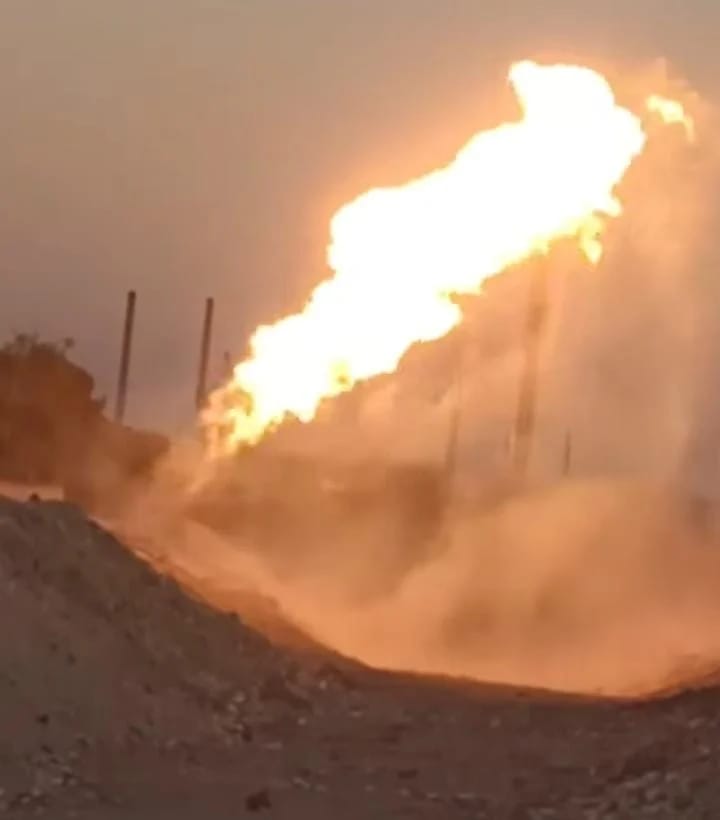 اللقطات الأولى من انفجار خط غاز في الظهير الصحراوي بمنطقة الصف