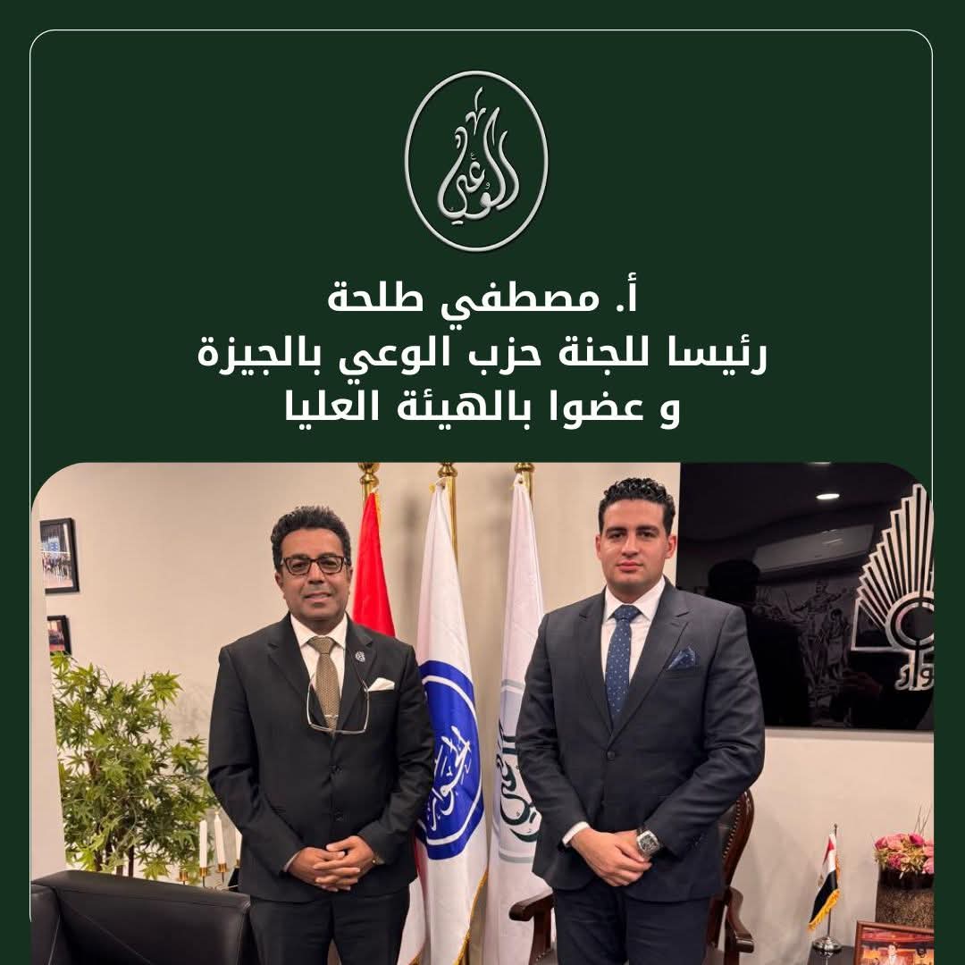 مصطفي طلحة رئيسا للجنة حزب الوعي بالجيزة وعضوا بالهيئة العليا