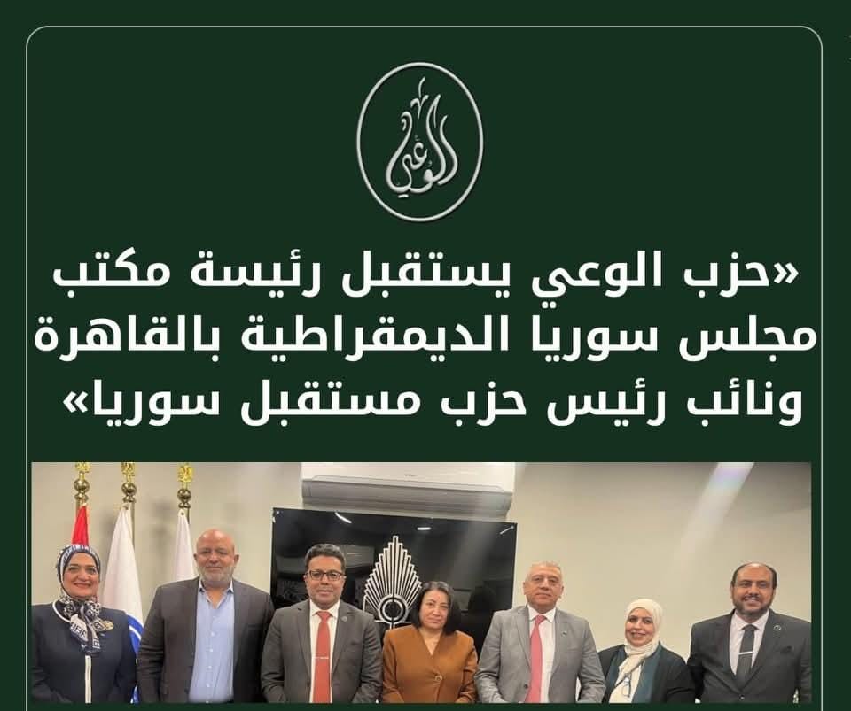 "الوعي" يستقبل رئيسة مكتب مجلس سوريا الديمقراطية بالقاهرة ونائب رئيس حزب مستقبل سوريا