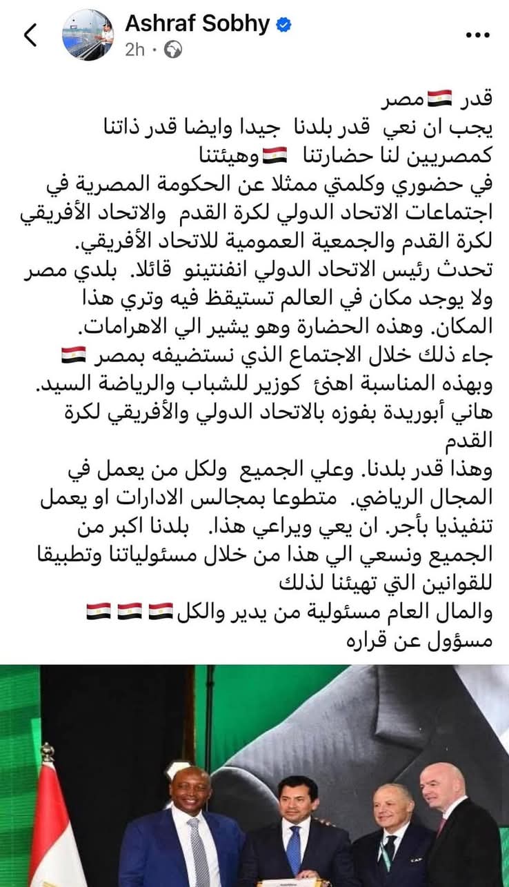 رسالة خفية من أشرف صبحي عن أزمة القمة 130