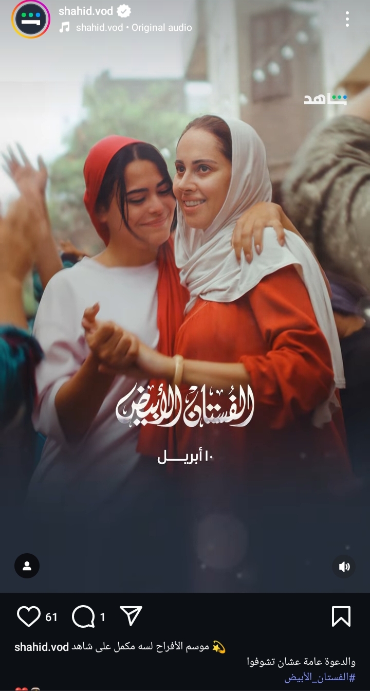 ونشرت منصة شاهد البوستر الرسمي للفيلم الذي يجمع أسماء جلال وياسمين رئيس وأعلنت من خلاله عن موعد العرض، وذلك من خلال حسابها الرسمي عبر موقع تبادل الصور والفديوهات القصيرة إنستجرام، وعلقت: “ موسم الأفراح لسه مكمل علي شاهد والدعوة عامة عشان تشوفوا الفستان الأبيض”.