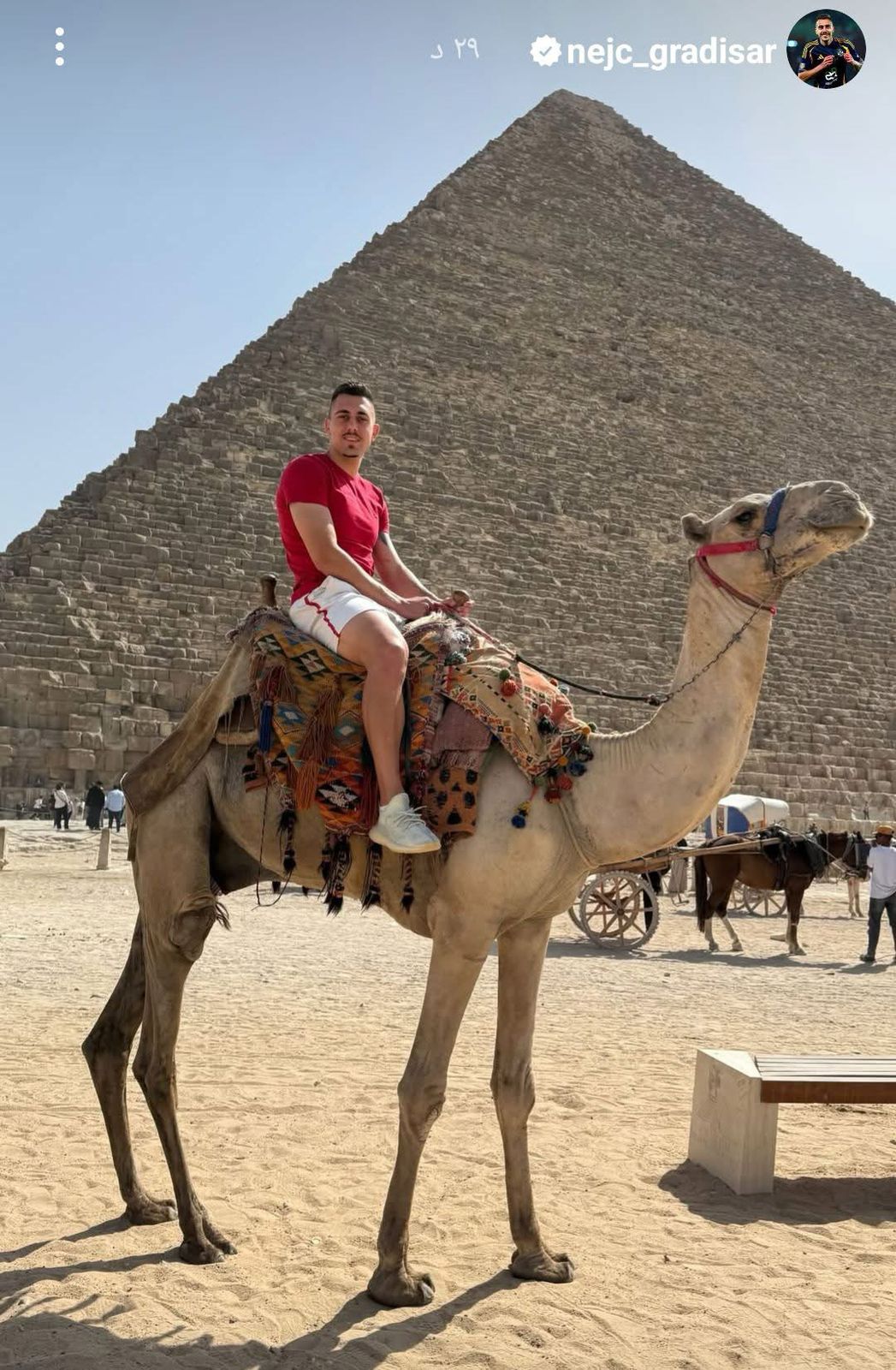 ونشر السلوفيني جراديشار صورة له عبر ستوري على حسابه على موقع التواصل الاجتماعي انستجرام، خلال زيارته للأهرامات أثناء.