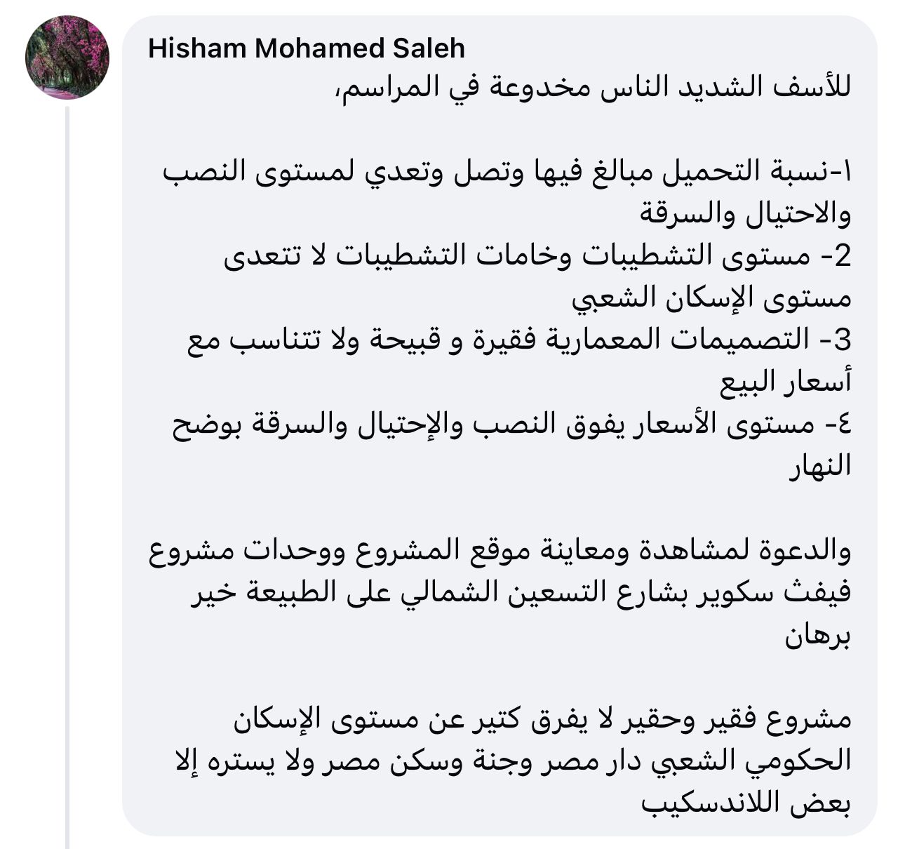 وقال متضرر ثالث،" دمروا كل الملاك اللي اشتروا معاهم في أكتوبر فى مارفيل نيوزايد ودي اول شركة في مصر تنزل السعر وفضحوا نفسهم قدام الناس و نزلو السعر من ١١٠ الف لحد 70 الف و دمروا اللي اشتروا معاهم .. الشراء والاستثمار معاهم خطر كبير".