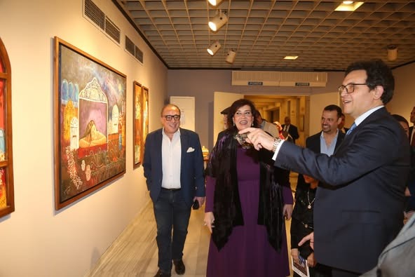كما تفقد وزير الثقافة معرض “طَــلّـة من الشبــاك” للفنانة أميمة السيسي، المقام بقاعة صلاح طاهر للفنون التشكيلية، ويضم المعرض نحو 40 لوحة بخامات الزيت والأكريليك على الكانڤاس، تقدم رؤية تشكيلية خاصة تستوحي مشاهدها من تفاصيل الحياة اليومية والتراث الشعبي، من خلال نوافذ بصرية تعبّر عن ارتباط الإنسان بمحيطه، وما يحمله من أحاسيس وتأملات.