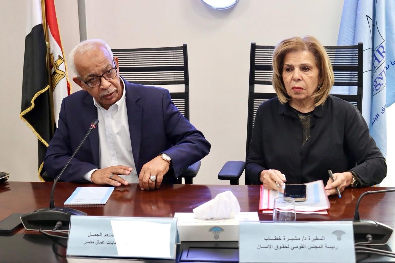 من جانبه، أكد عبد المنعم الجمل رئيس الاتحاد العام لنقابات عمال مصر أن المجلس القومي لحقوق الإنسان يُعد الحارس الأمين على مبادئ حقوق الإنسان وقيمها السامية، مشيرًا إلى أن الاتحاد العام هو الممثل الشرعي والداعم القوي لشريحة واسعة من أبناء هذا الوطن، وهم عمال مصر الأوفياء.
