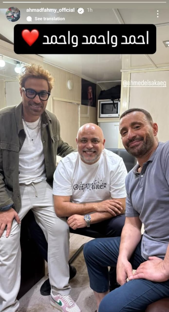 وشارك أحمد فهمي جمهوره صورة من كواليس تصوير فيلم أحمد و أحمد، وذلك من خلال حسابه الرسمي عبر موقع تبادل الصور والفيديوهات القصيرة “إنستجرام”، عبر خاصية استوري، وعلق: “أحمد وأحمد وأحمد”.