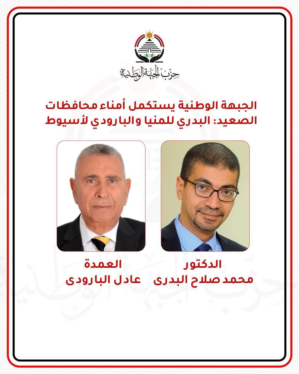 الجبهة الوطنية يستكمل أمناء محافظات الصعيد.. البدري للمنيا والبارودي لأسيوط
