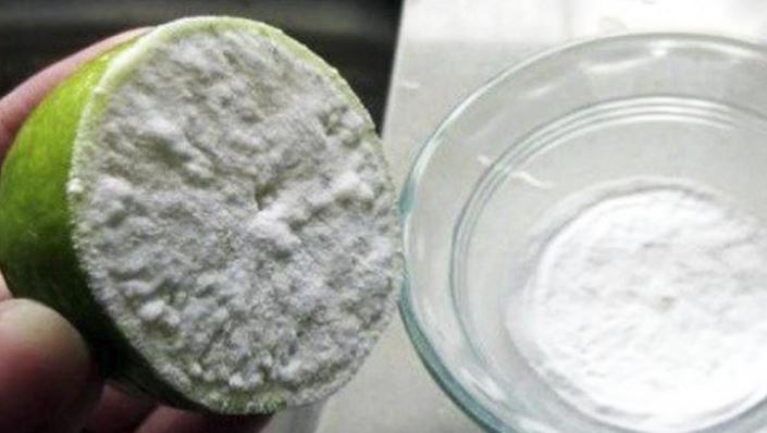 تقطع ليمونة نصفين، ضعى ملعقة كبيرة من صودا الخبز فوق الليمون، افركي المرفقين والركبتين لمدة دقيقة واحدة، اتركيه لمدة 15 دقيقة ثم اغسليه بماء دافئ، كررى الوصفة مرة كل يومين للحصول على النتيجة المطلوبة .