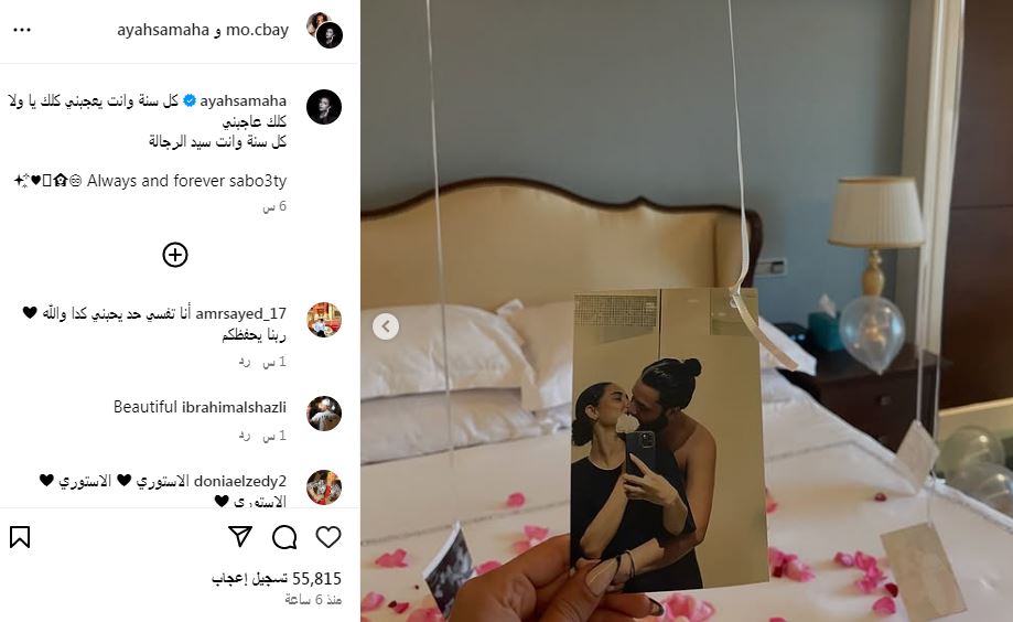 حرصت الفنانة آية سماحة على تهنئة زوجها المخرج محمد السباعي وذلك بمناسبة عيد ميلاده حيث شاركت مجموعة صور رومانسية عبر صفحتها على "إنستجرام" وكتبت عليها "كل سنة وانت يعجبنى كلك يا ولا كلك عاجبني، كل سنة وانت سيد الرجالة".