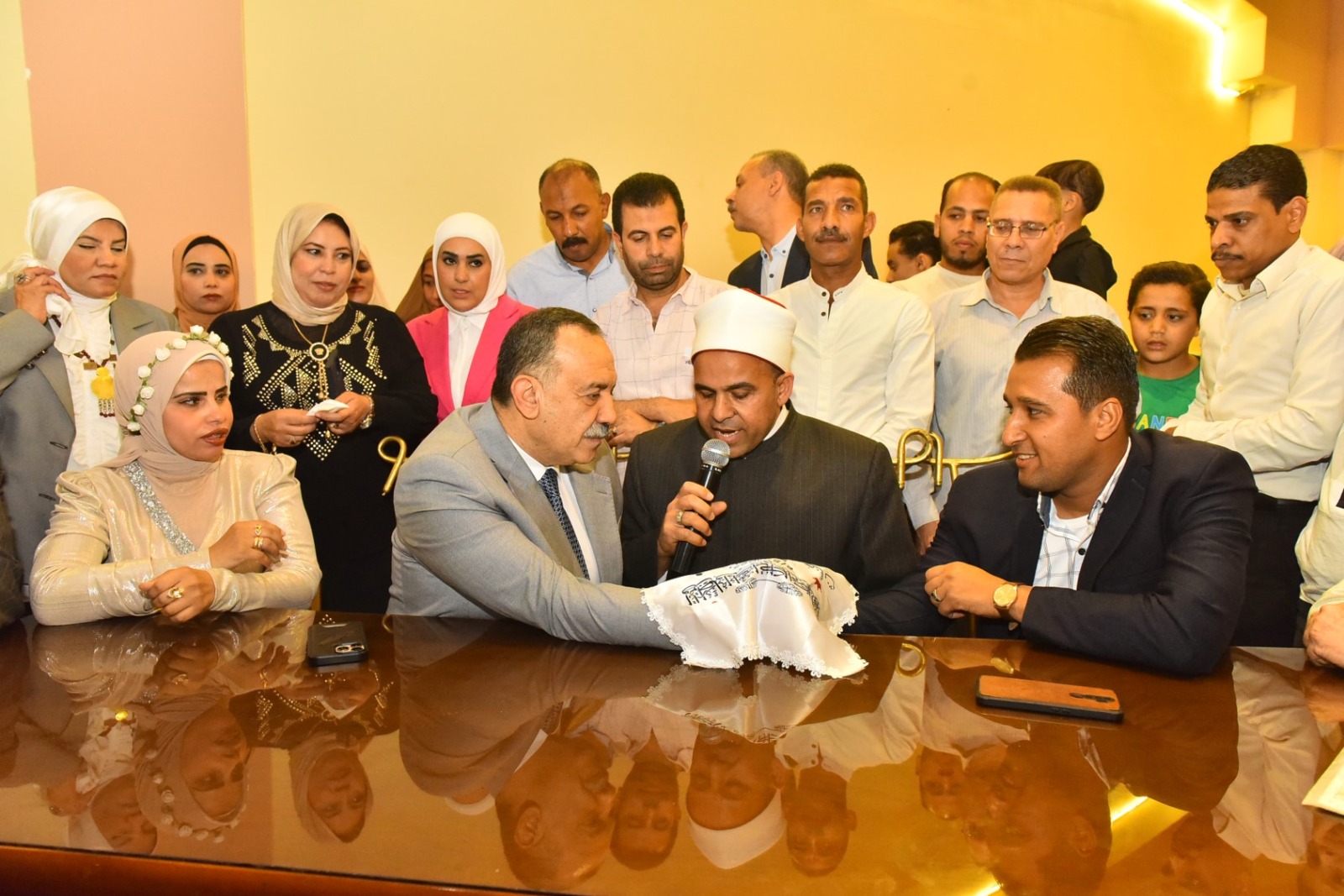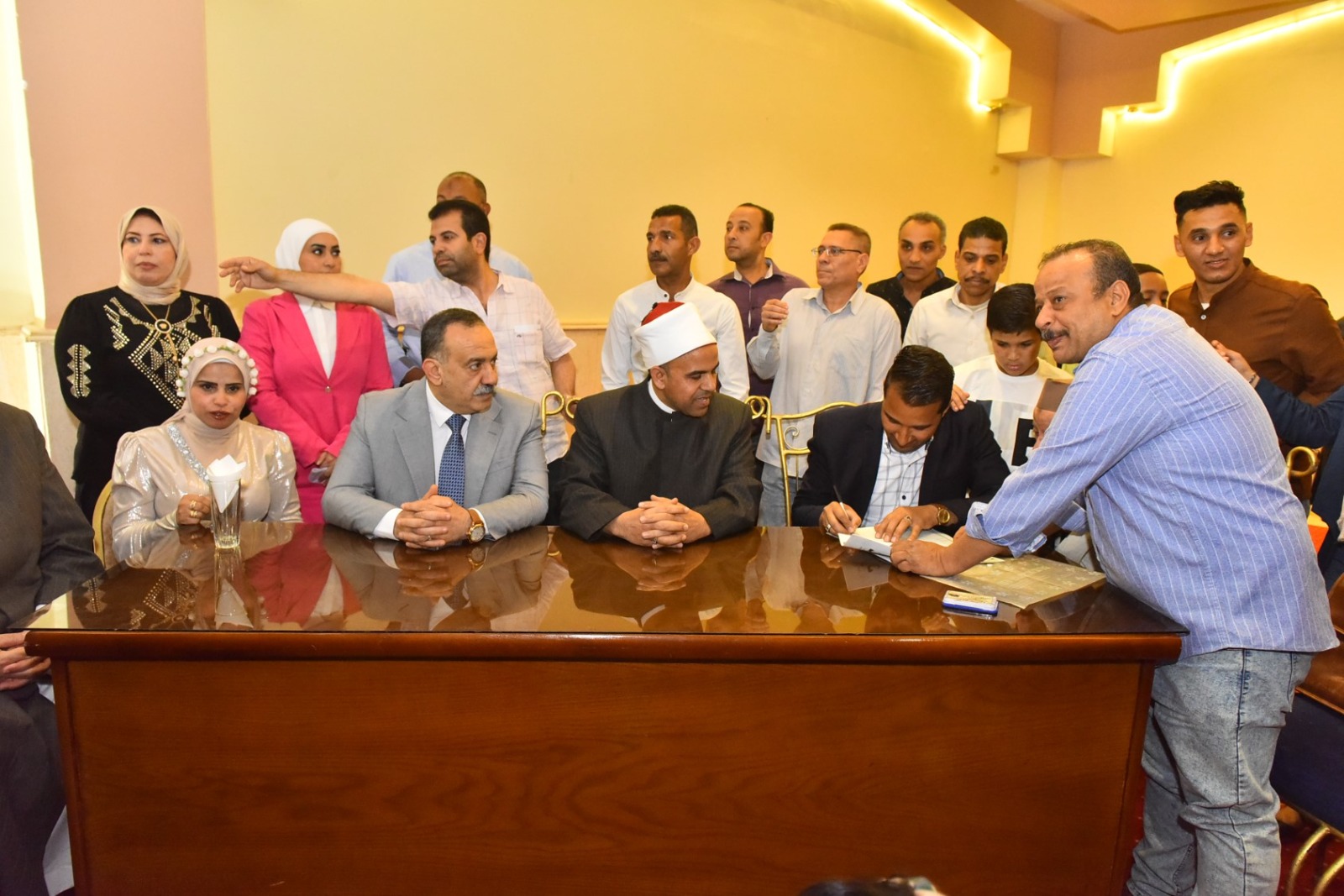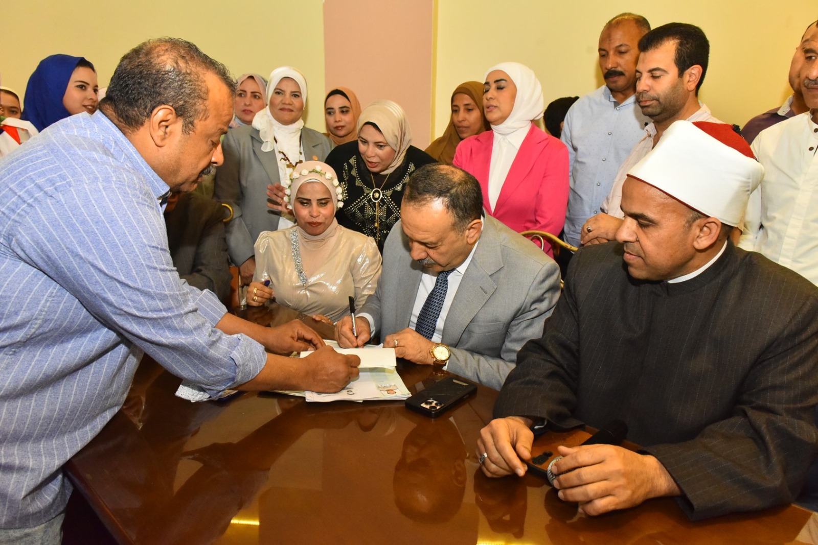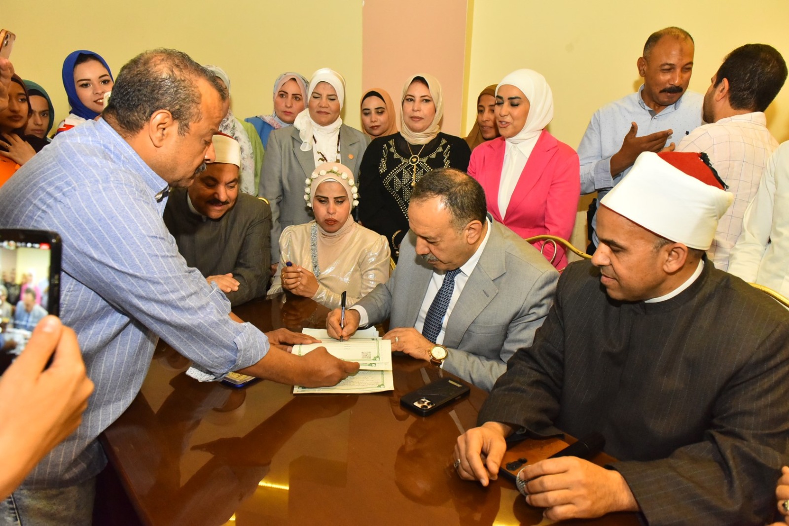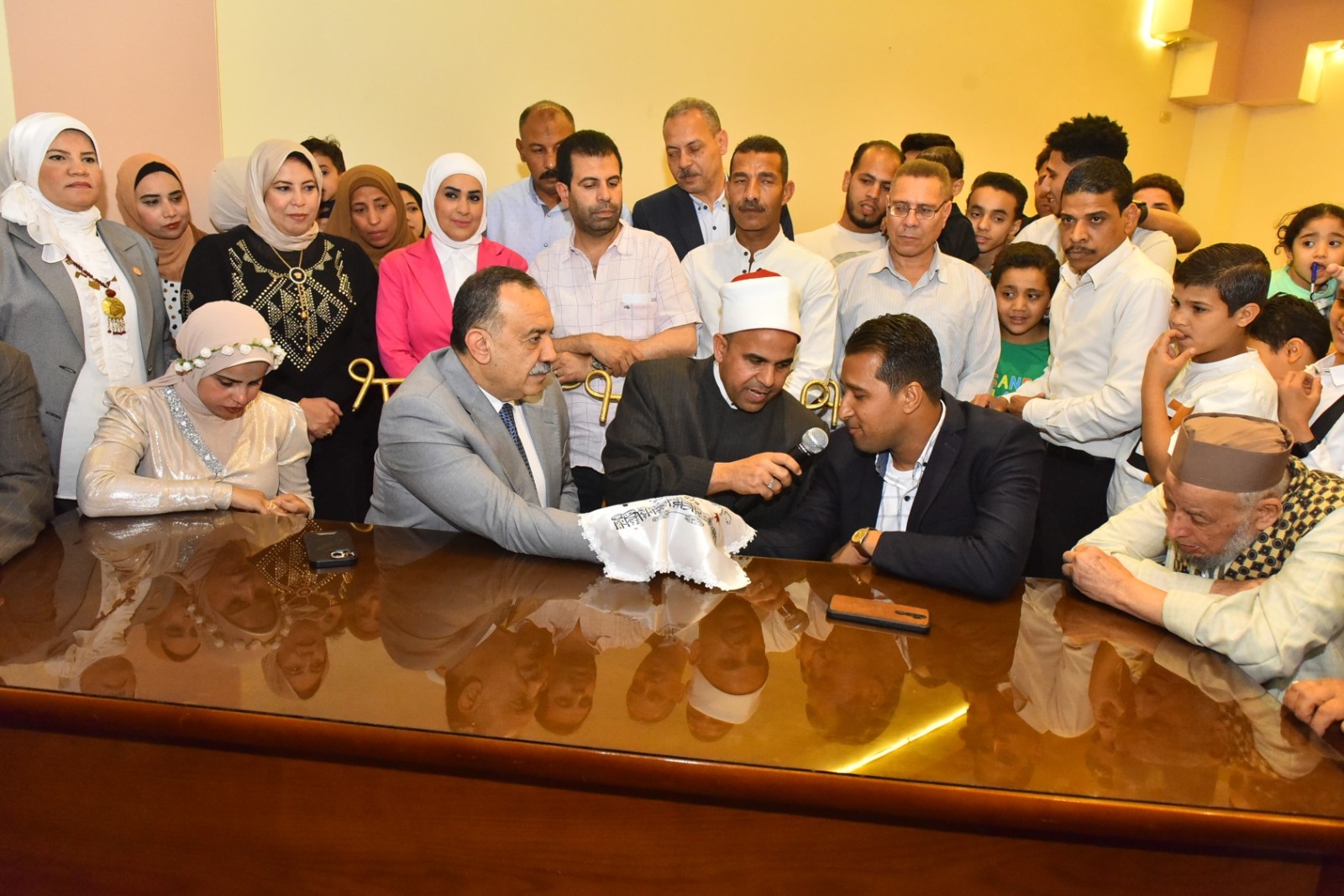 محافظ أسيوط يشهد حفل عقد قران عروسين من دور الأيتام ويوقع كوكيل للعروس