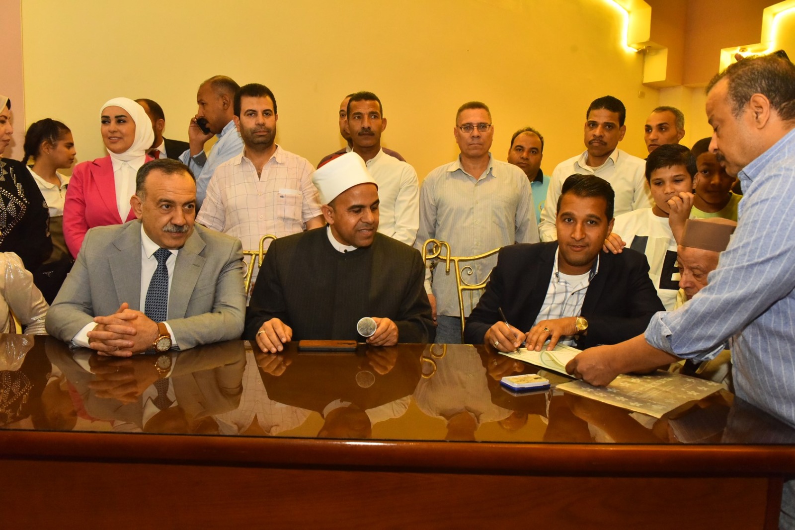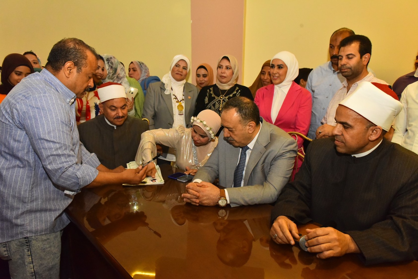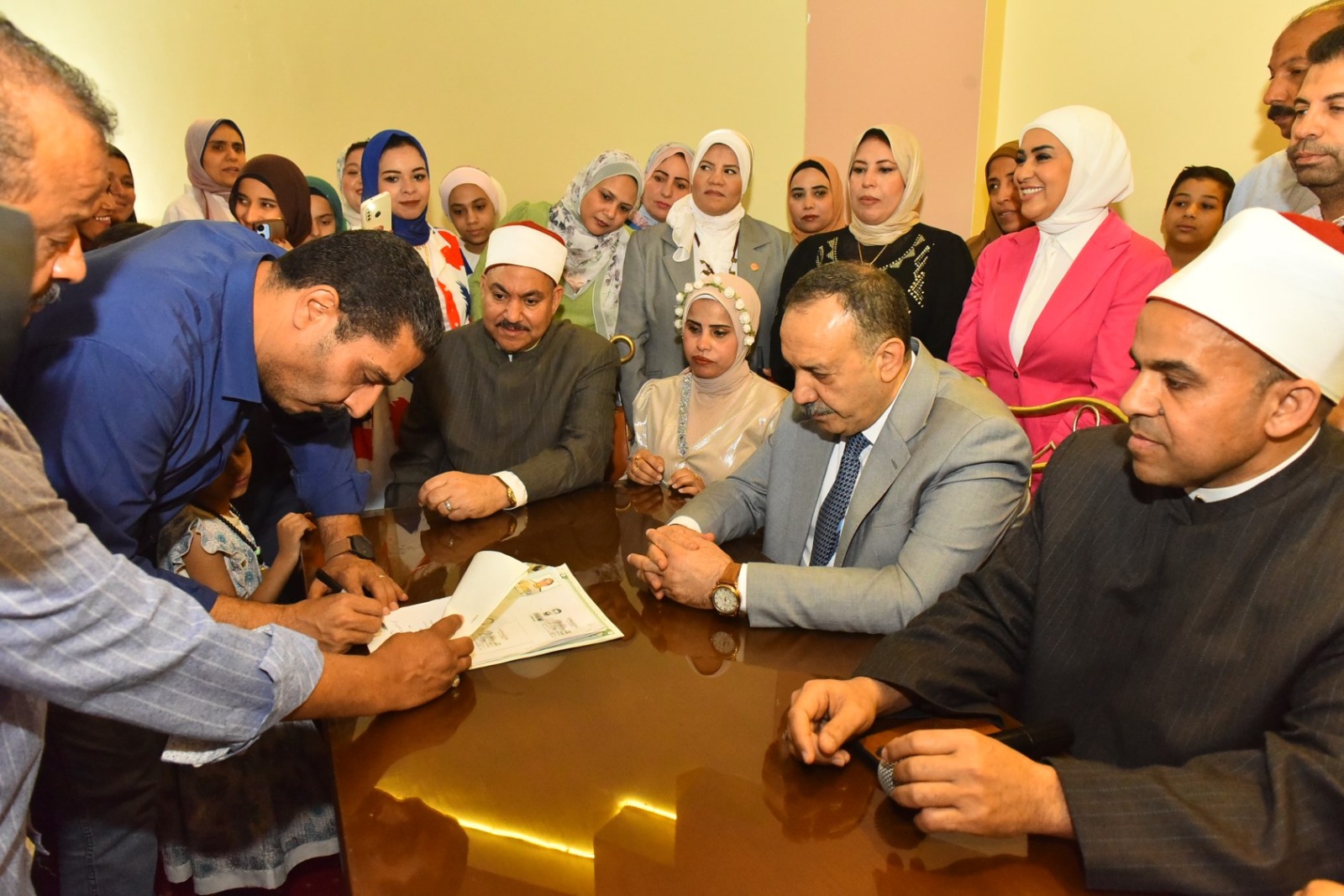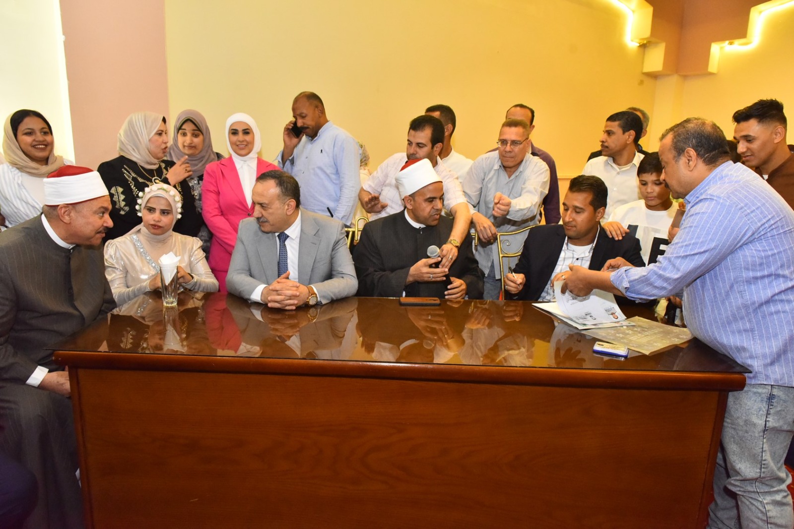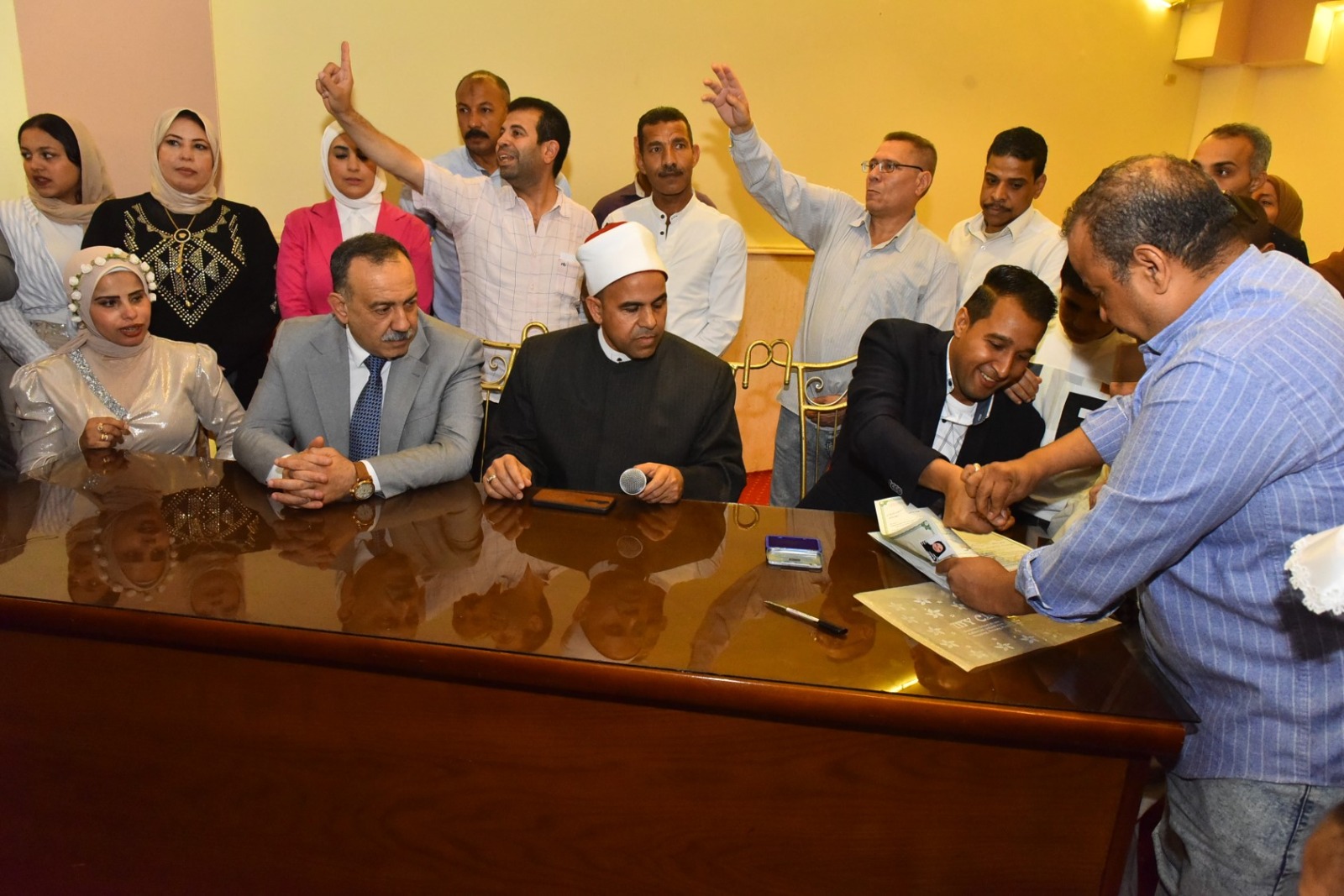 محافظ أسيوط يشهد حفل عقد قران عروسين من دور الأيتام ويوقع كوكيل للعروس