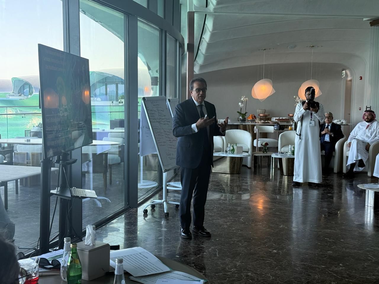جاء ذلك خلال محاضرة ألقاها الدكتور خالد عبدالغفار، بعنوان «الثورات الصناعية والرعاية الصحية» بحضور الدكتور فهد بن عبدالرحمن الجلاجل وزير صحة المملكة العربية السعودية، وعدد من مسئولي القطاع الصحي السعودي، ضمن برنامج زيارته للمملكة.