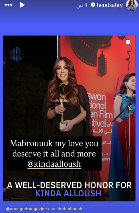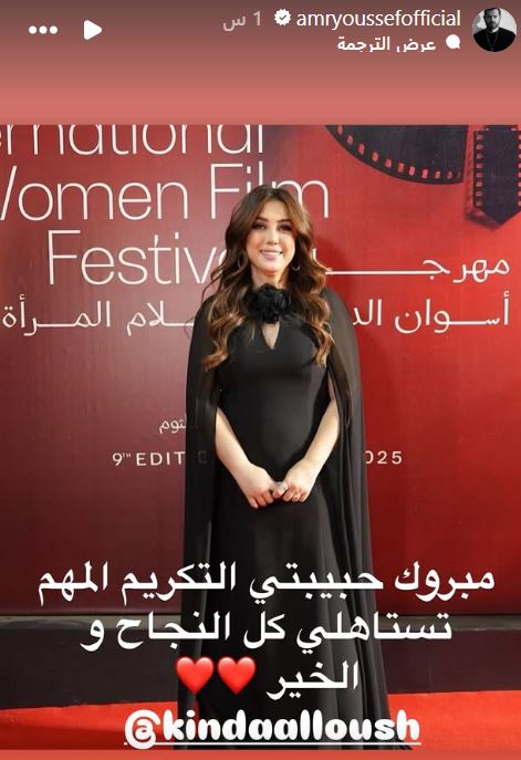 وهنأ الفنان عمرو يوسف زوج كندة علوش عبر خاصية الاستوري على حسابه الرسمي وكتب" مبروك حببتي التكريم المهم تستاهلي كل النجاح والخير".