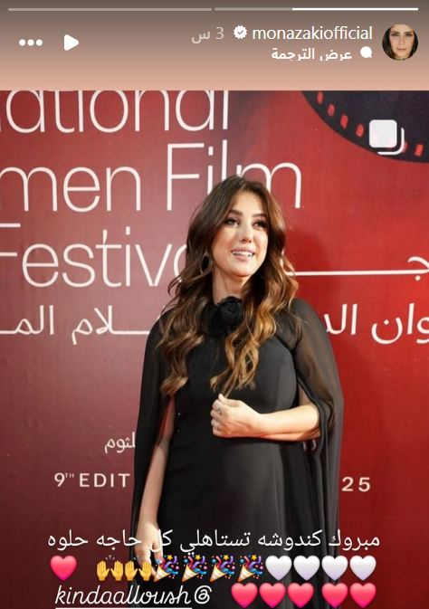 من جانبها كتبت الفنانة مني ذكي عبر صفحتها الرسمية " مبروك كندوشة تستاهلي كل حاجة حلوة ".