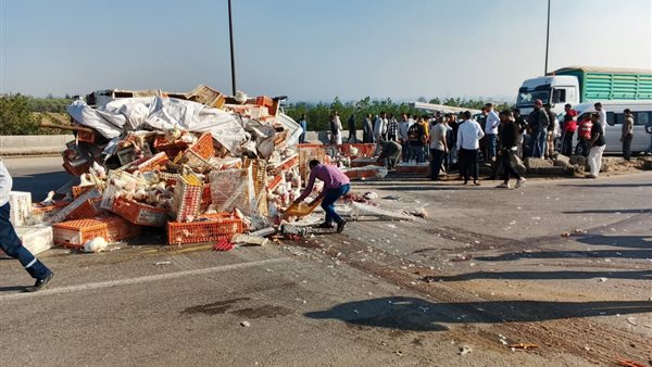 أصيب شخصان بإصابات متفرقة إثر إنقلاب سيارة محملة بالدواجن البيضاء على الطريق الإقليمي المار بمحافظة المنوفية، وتم تحرير المحضر اللازم بالواقعة.