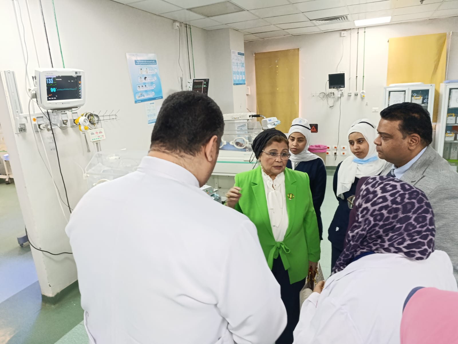 و حرصت نائب الوزير خلال تفقدها وحدة حديثي الولادة والمبتسرين، على مناقشة الفريق الطبي بشأن إجراءات استقبال الحالات، وآلية توزيع الفريق الطبي داخل الوحدة، مؤكدة أن منظومة التأمين الصحي الشامل وتجهيزات منشآتها ستدعم الإسراع في تطبيق نظام تقسيم وحدات رعاية حديثي الولادة إلى 3 مستويات حسب الحالة الصحية، بما يساهم في تقديم رعاية فائقة للحالات الحرجة، وتقليل معدلات العدوى ووفيات حديثي الولادة.