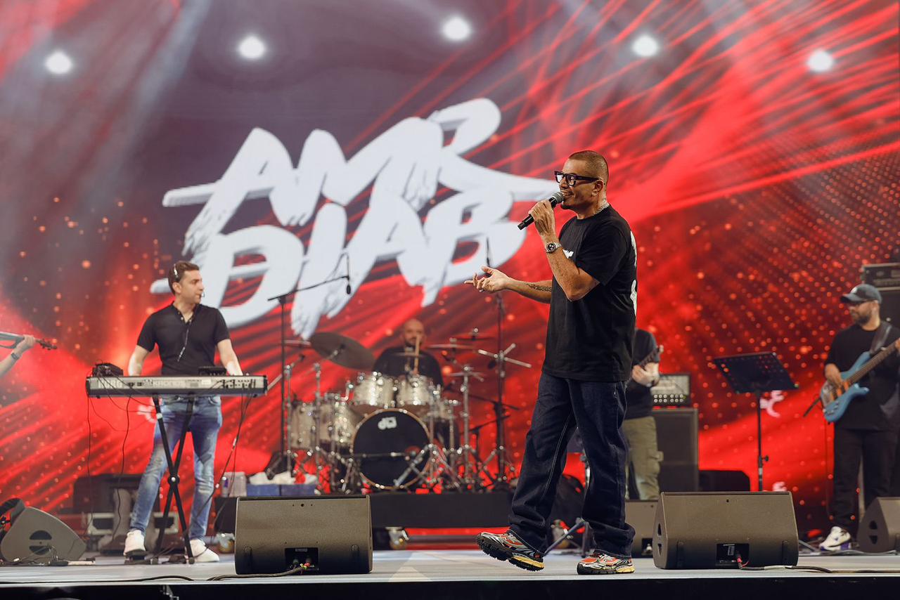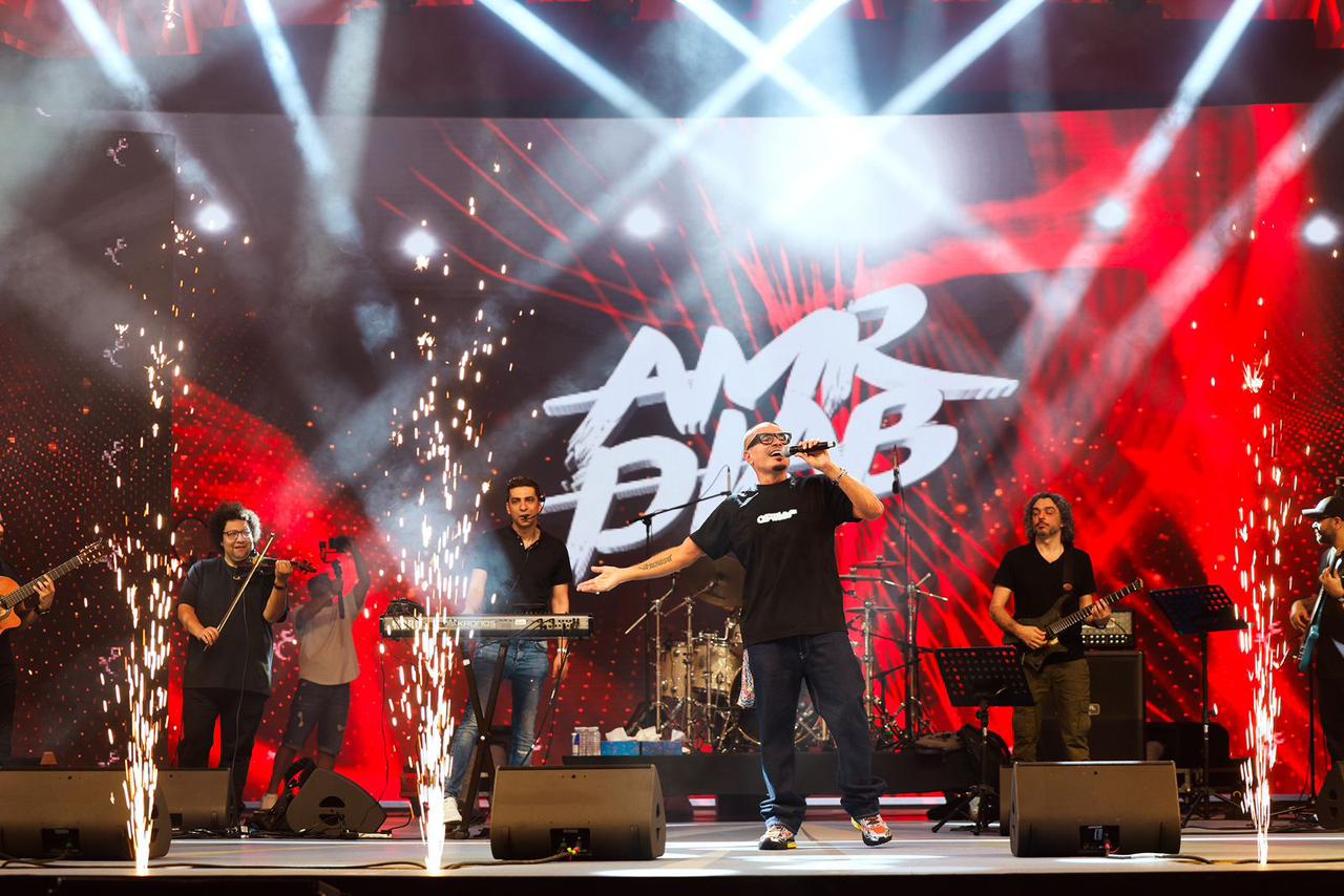 عمرو دياب يتألق في القرية العالمية ويشعل ليل دبي (صور)