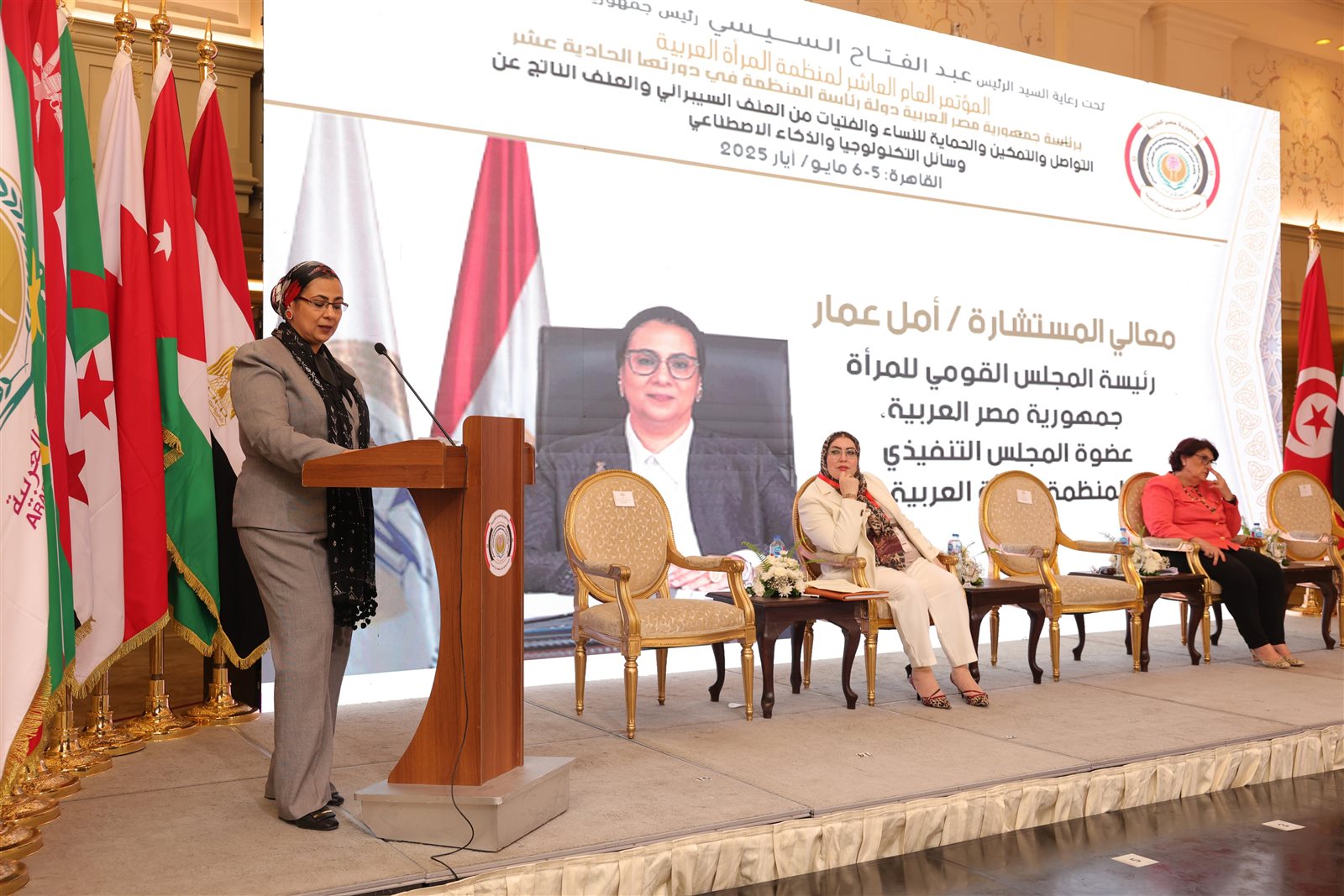 انطلقت اليوم فعاليات اليوم الأول من المؤتمر العام العاشر، والذي ينظمه المجلس القومي للمرأة بالتعاون مع منظمة المرأة العربية بعنوان "التواصل والتمكين والحماية للنساء والفتيات من العنف السيبراني والعنف الناتج عن وسائل التكنولوجيا والذكاء الاصطناعي"، والذي ترأسه مصر، دولة رئاسة المنظمة في دورتها الحالية، ويستمر علي مدار يومين.