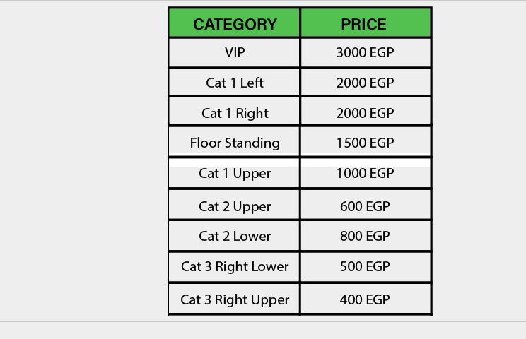وجاءت أسعار تذاكر الحفل كالاتي :