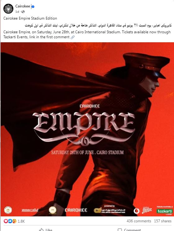 وكانت روجت الصفحة الرسمية لفرقة كايروكي عبر حسابها الرسمي "فيس بوك" للحفل وكتبت " كايروكي امباير، يوم السبت ٢٨ يونيو في ستاد القاهرة الدولي. التذاكر متاحة من خلال تذكرتي".