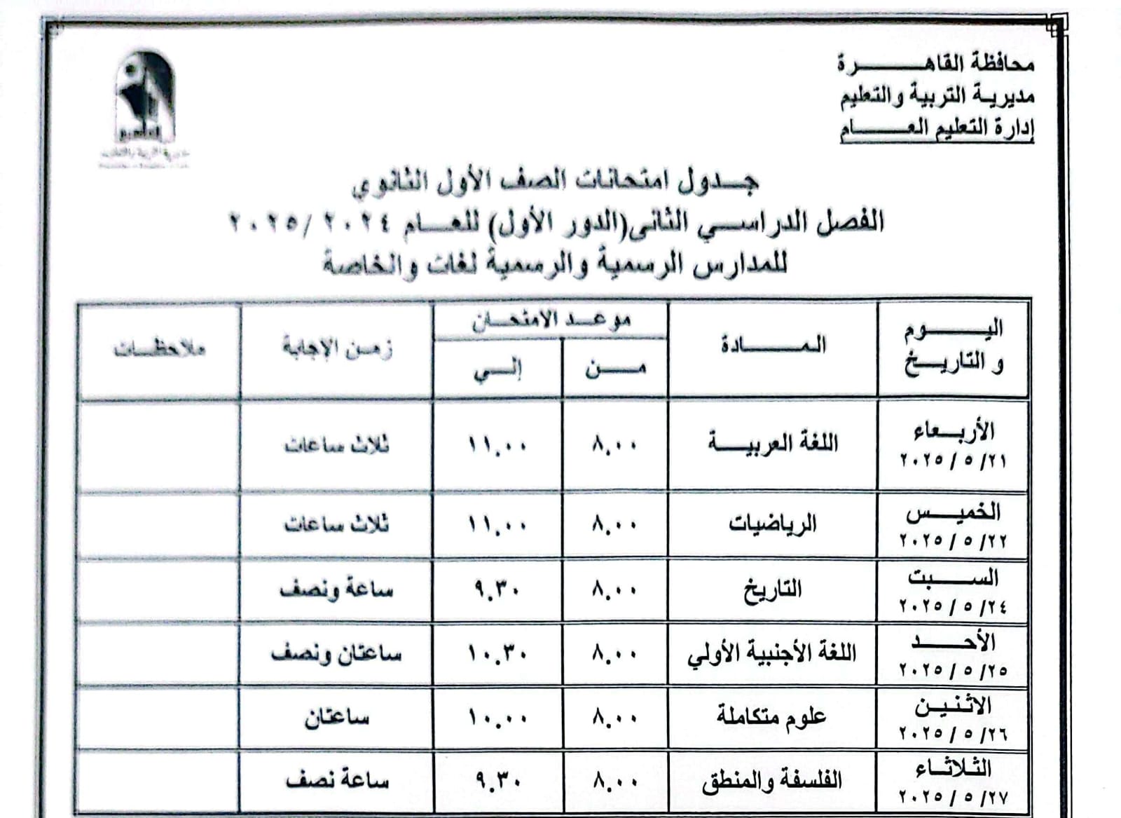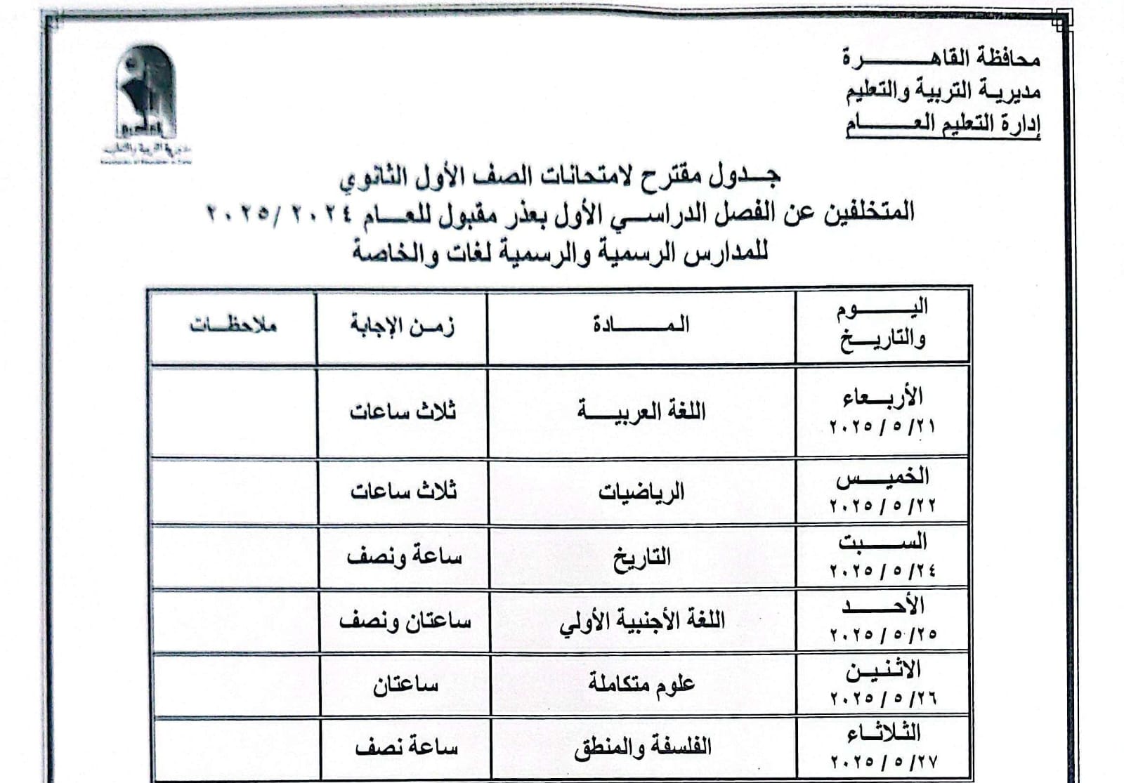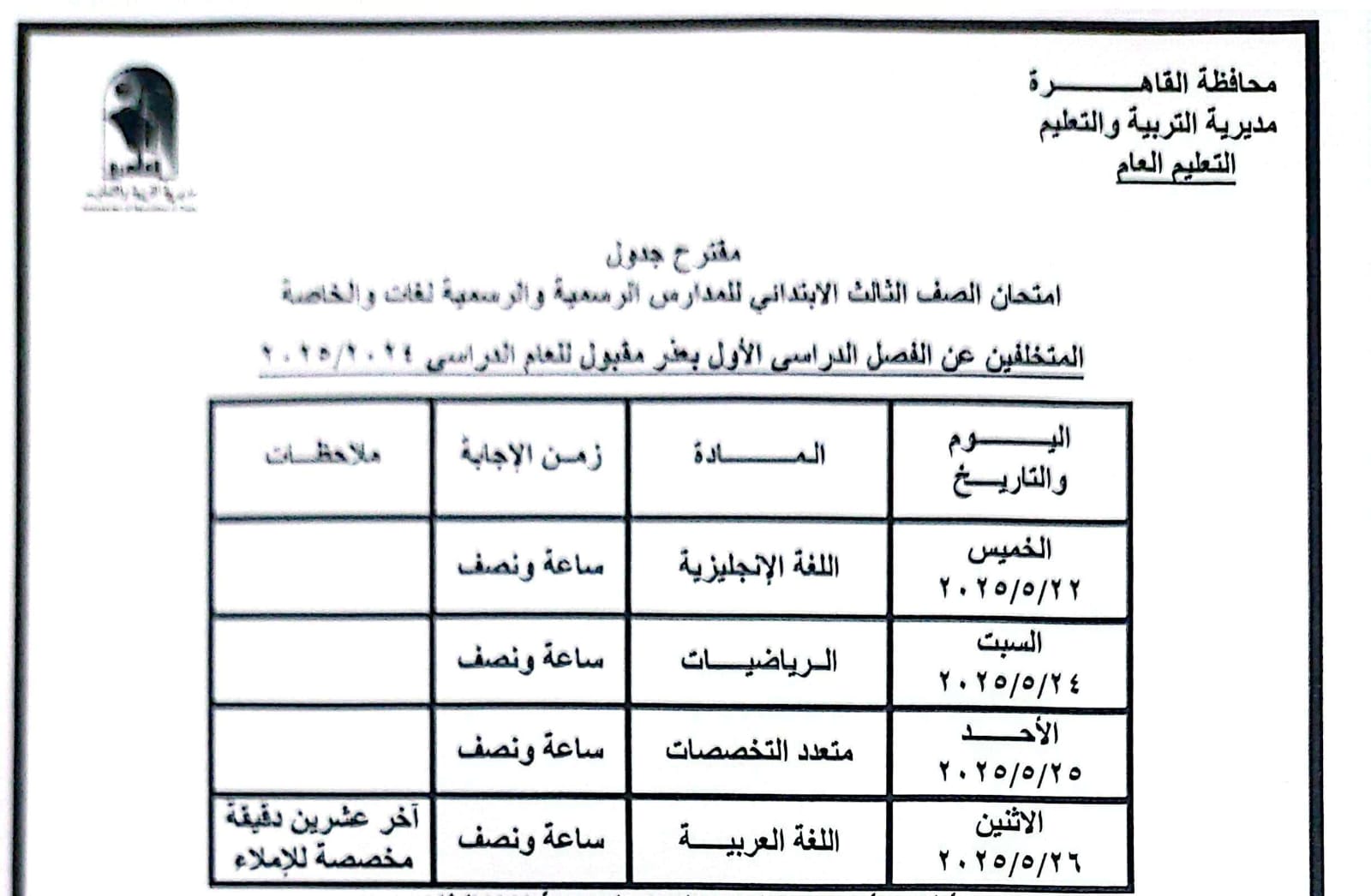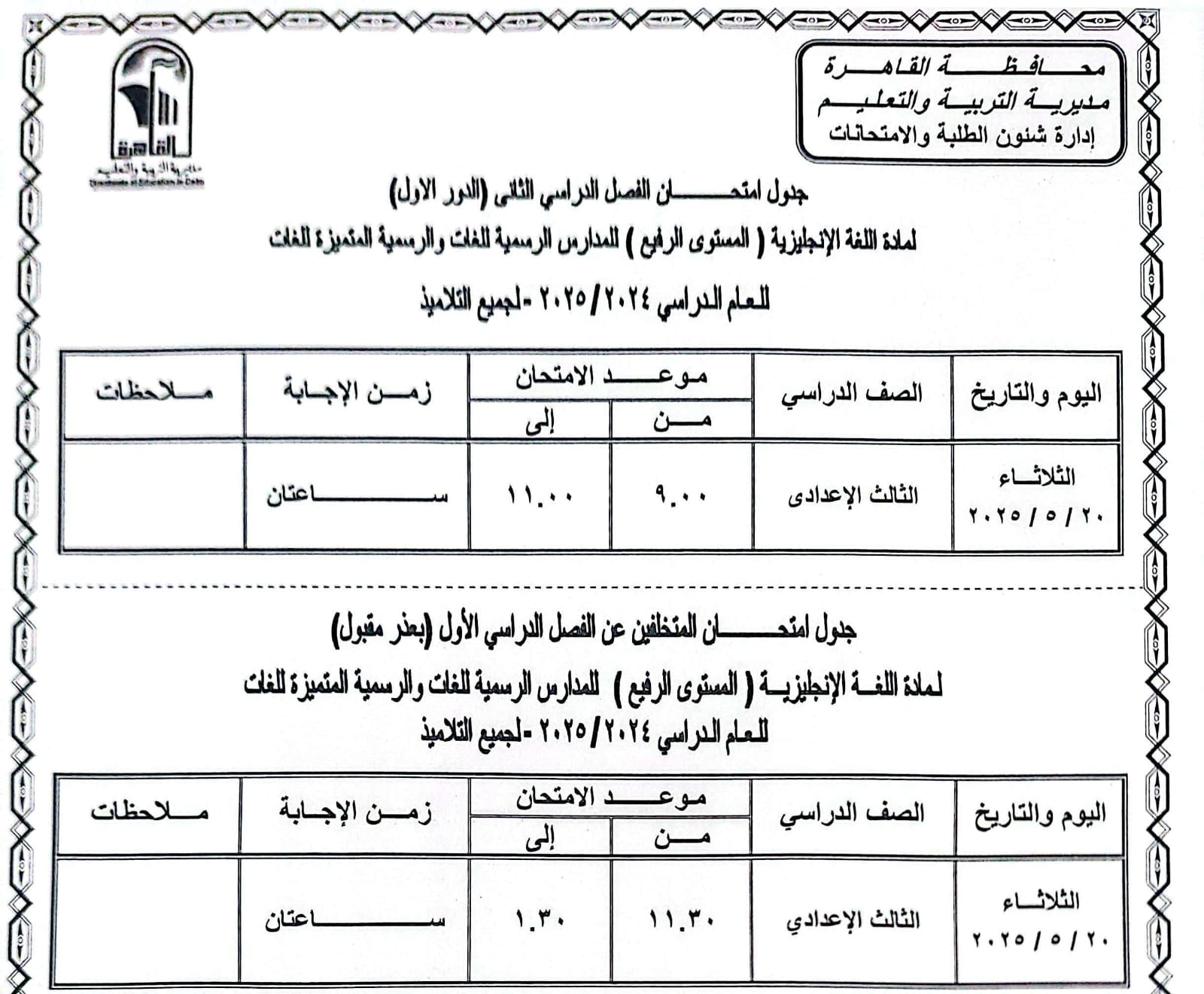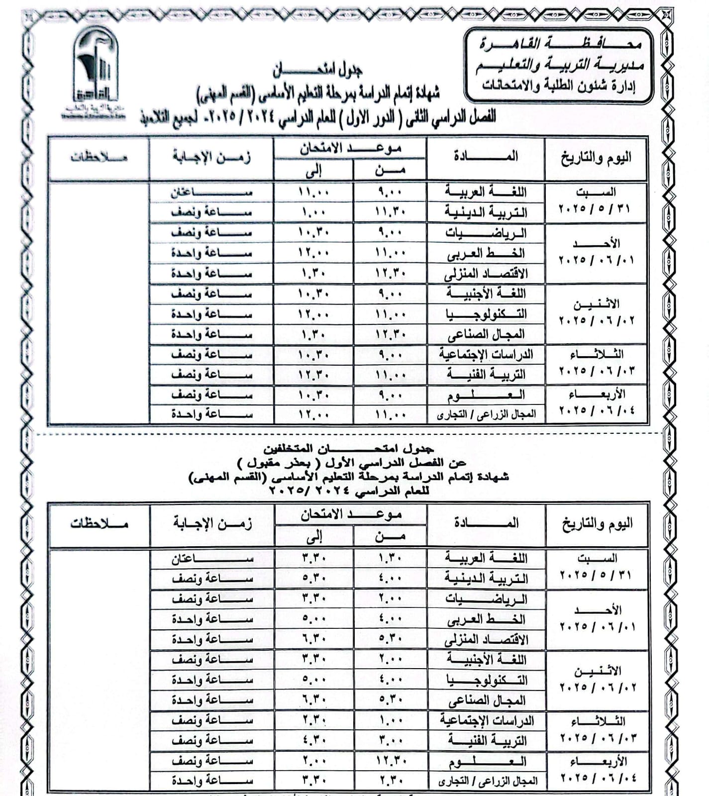 وأشارت سماح إبراهيم مدير مدير مديرية التربية والتعليم بالقاهرة إلى أن طلبة وطالبات الصف الأول والثاني الثانوي وما يعادلها سيؤدون الامتحانات في الفترة من الأربعاء ٢١ مايو إلى الثلاثاء ٢٧ مايو ، وسيؤدي طلبة وطالبات الصف الثالث الابتدائي الامتحانات في الفترة من الخميس ٢٢ مايو إلى الاثنين ٢٦ مايو ، والصف الرابع والخامس والسادس الابتدائي وما يعادله في الفترة من الخميس ٢٢ مايو حتى الثلاثاء ٢٧ مايو ، وامتحانات النقل الإعدادي العام والرياضي والمهنى وما يعادله فى الفترة من الخميس ٢٢ مايو حتى الثلاثاء ٢٧ مايو ، وامتحانات الإعدادية العامة والرياضية والصم والمكفوفين والمهنية من السبت ٣١ مايو حتى الاربعاء ٤ يونيو ، وامتحانات النقل للتعليم الفني من السبت ١٧ مايو حتى الثلاثاء ٢٧ مايو .