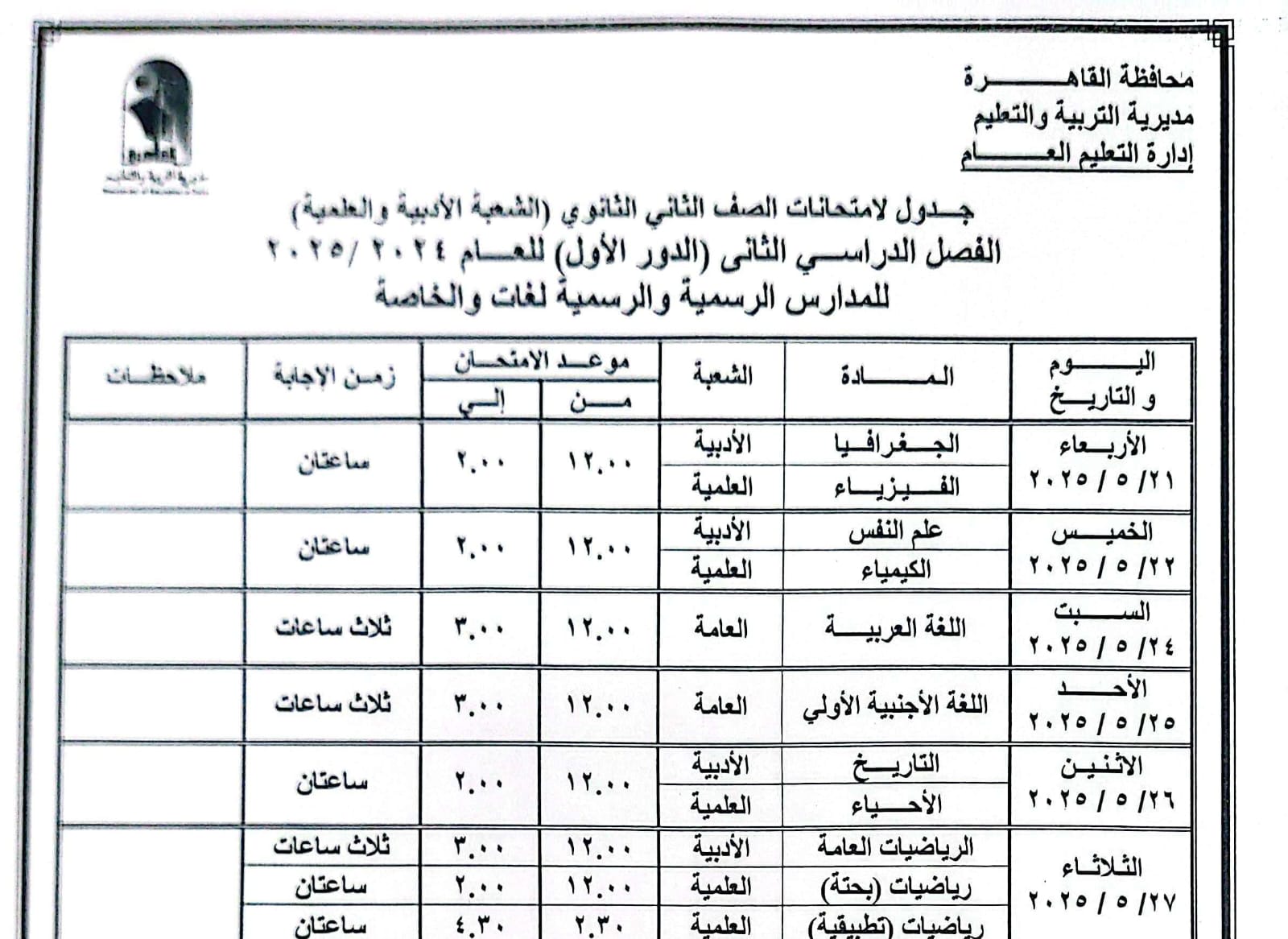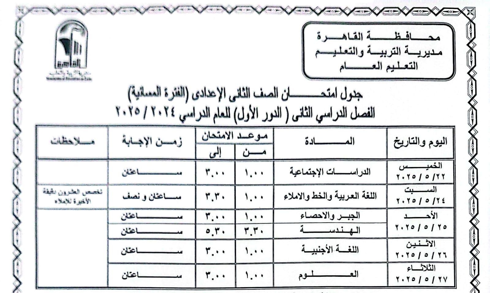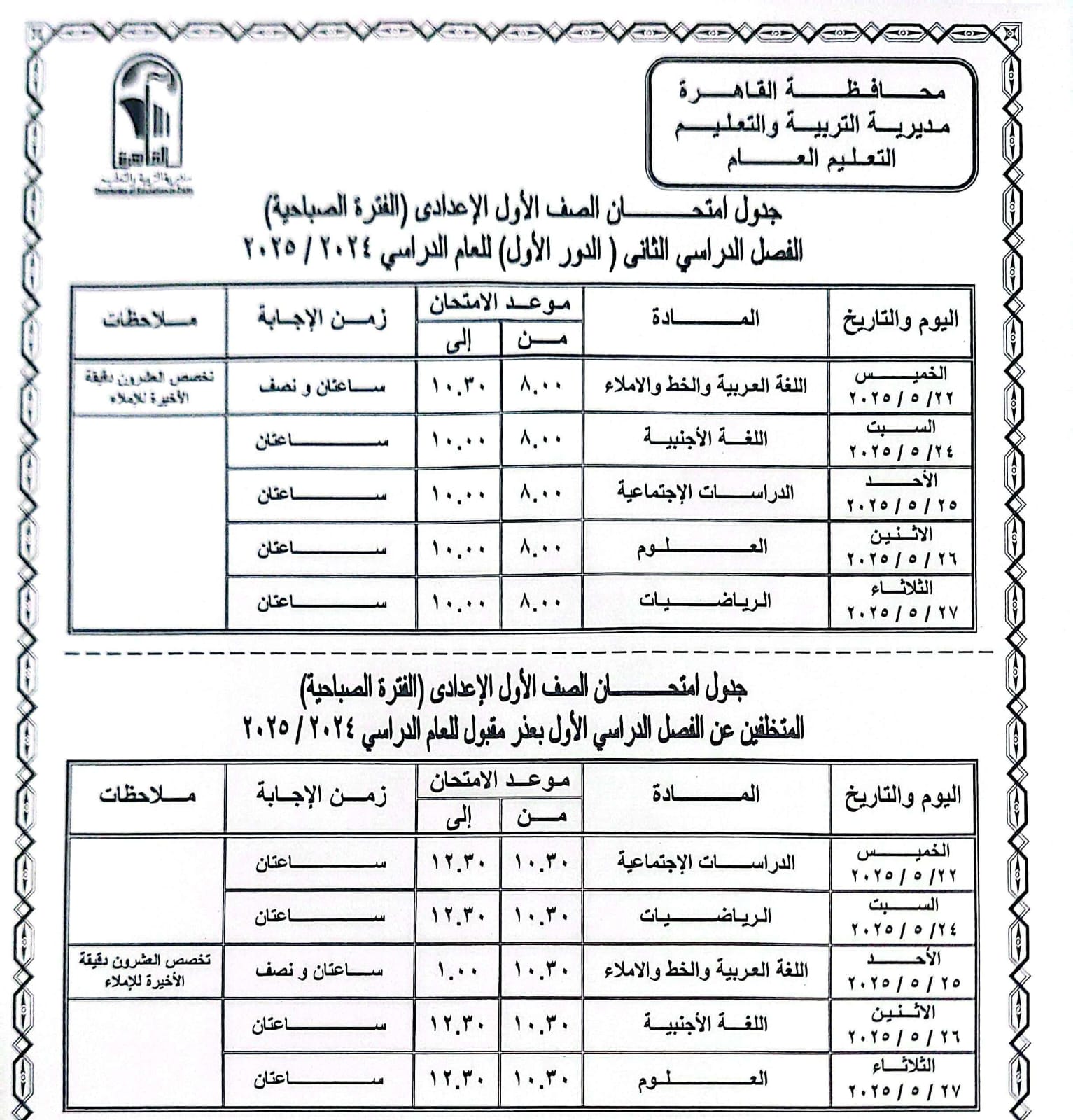 محافظ القاهرة يعتمد جدول امتحانات الفصل الدراسي الثانى.. تعرف على المواعيد