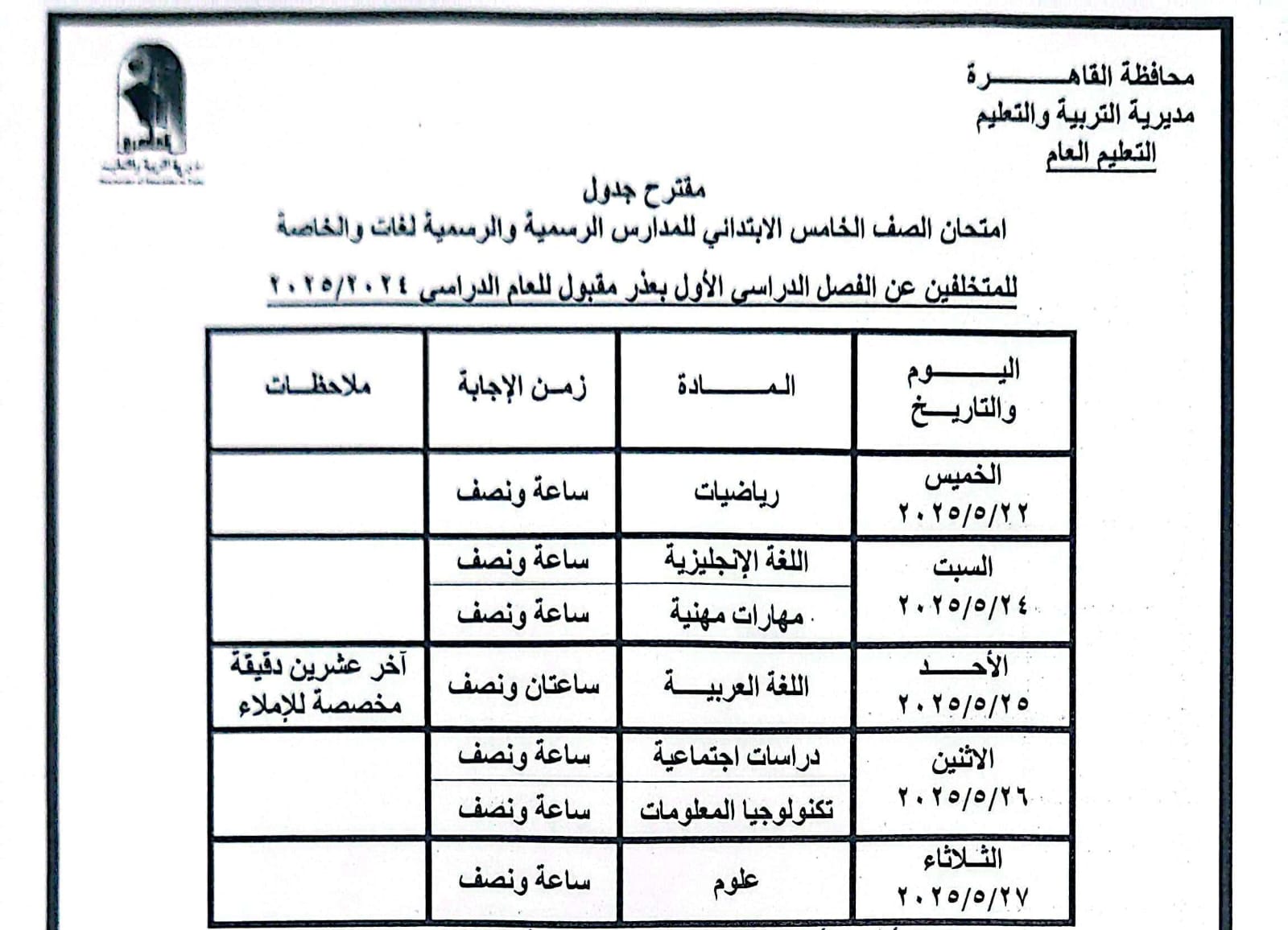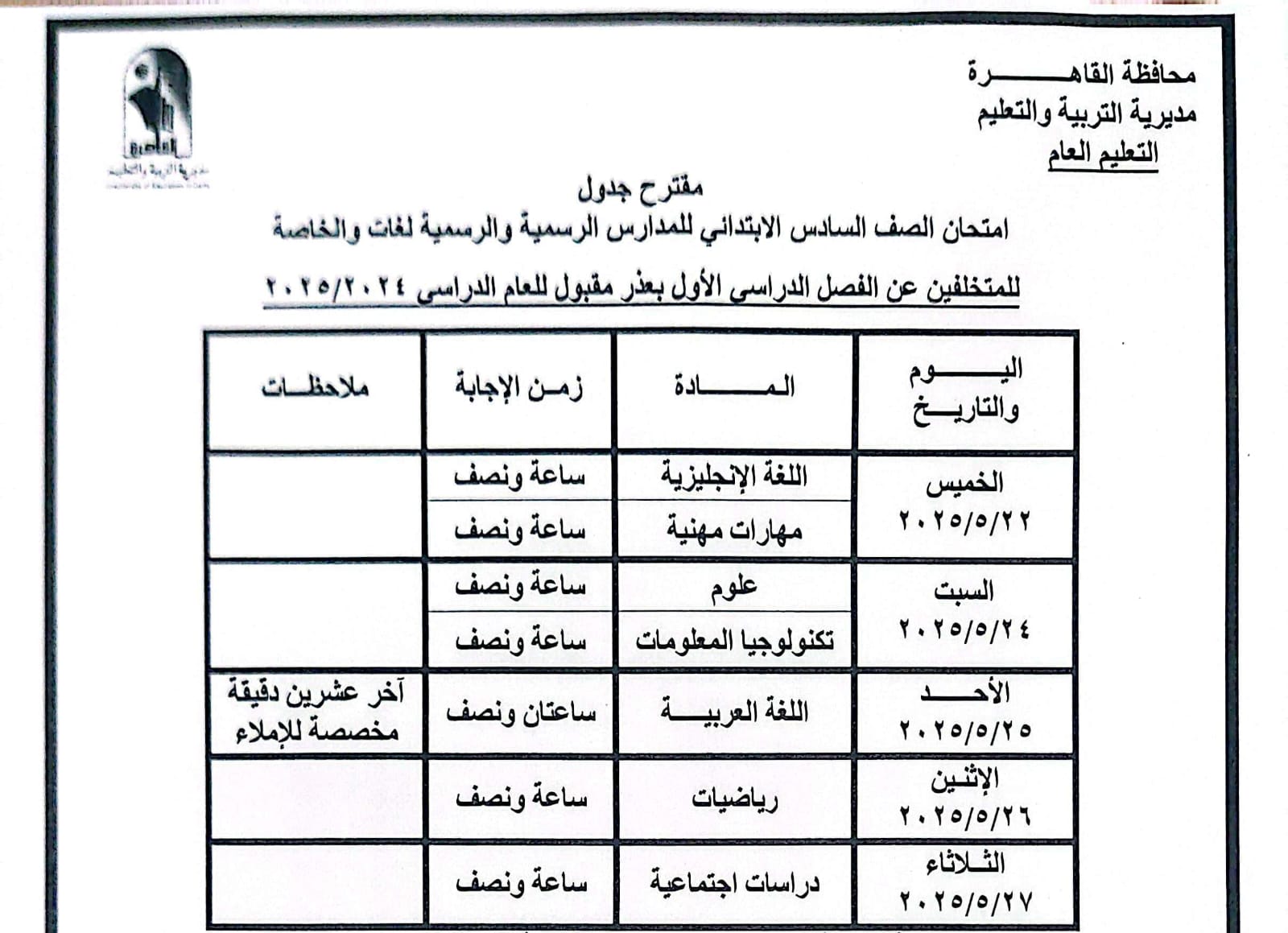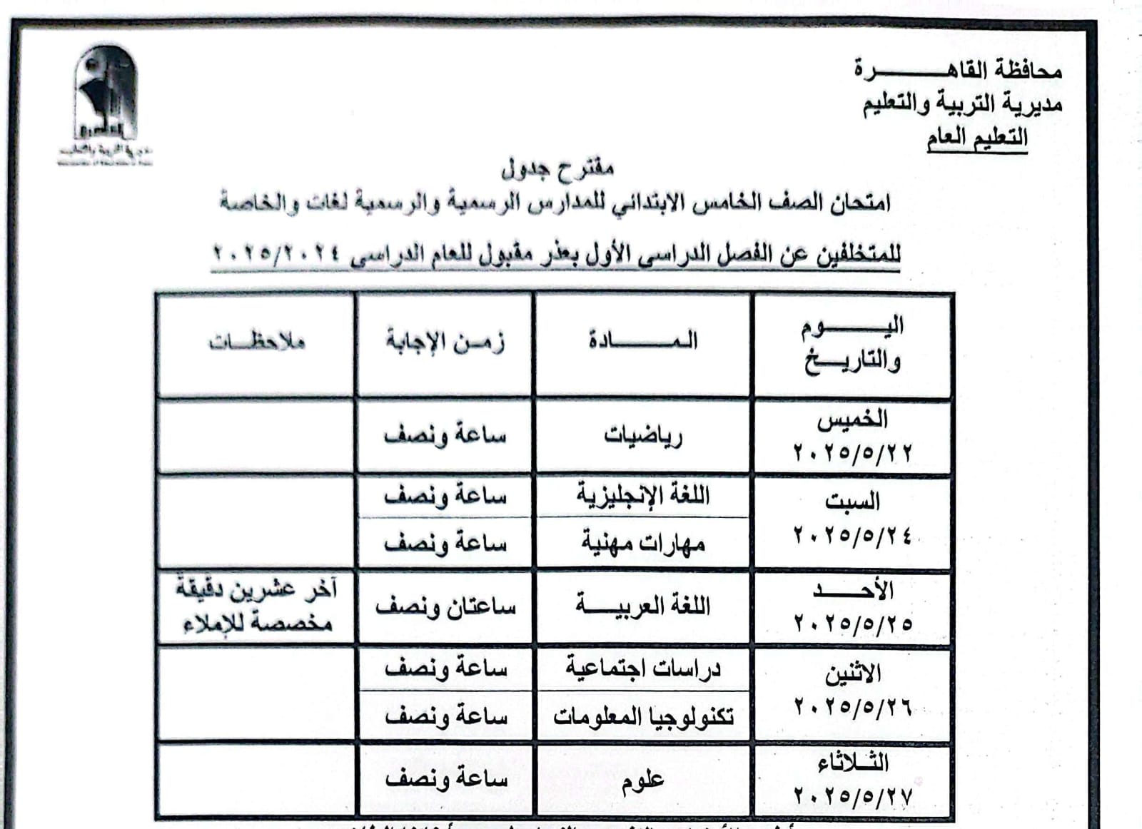 محافظ القاهرة يعتمد جدول امتحانات الفصل الدراسي الثانى.. تعرف على المواعيد