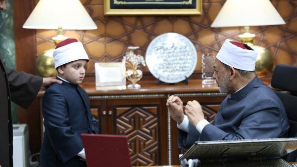 شيخ الأزهر يستقبل الطفل أنس ربيع متقن حفظ المتون والقرآن الكريم