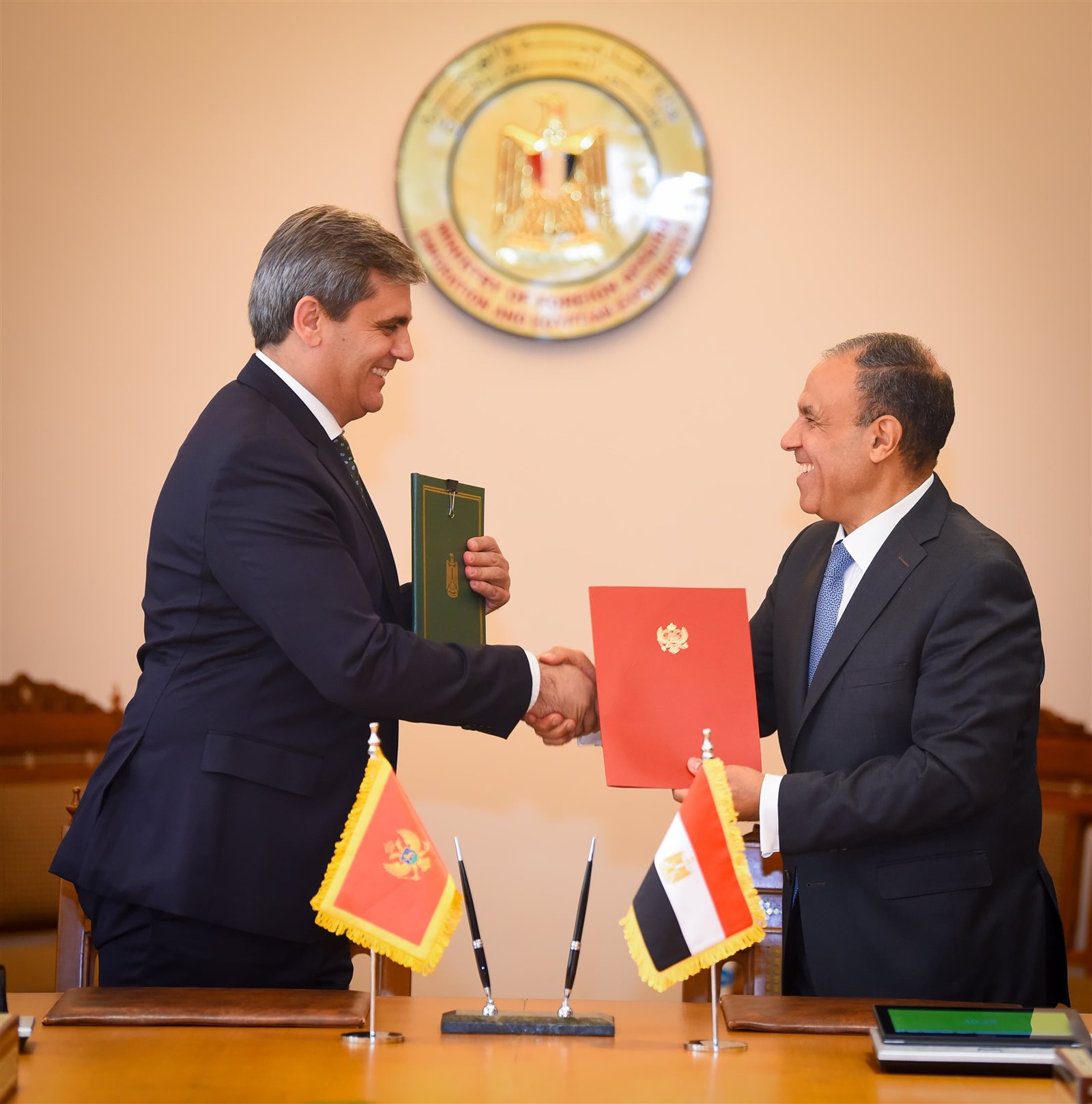 وقد أعقب المباحثات التوقيع على مذكرة تفاهم لتدشين آلية تشاور سياسي بين البلدين لتكون بمثابة الإطار المؤسسي لعملية التشاور بين الجانبين، وكذلك مذكرة تفاهم بين المعهد الدبلوماسي المصري والأكاديمية الدبلوماسية للجبل الأسود.