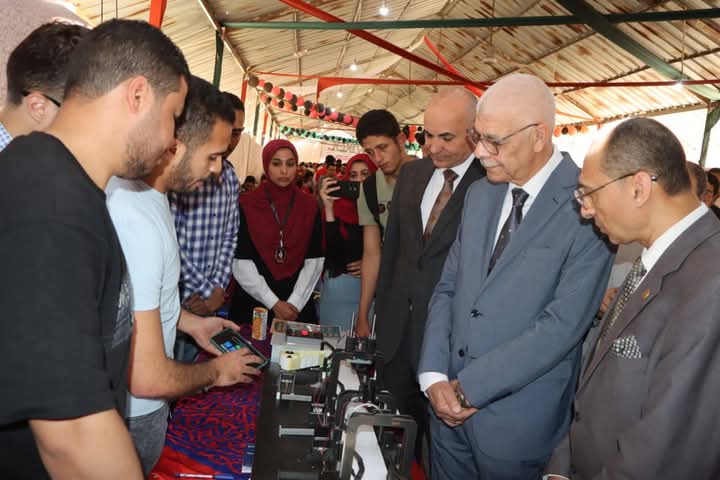 وأعرب رئيس الجامعة عن سعادته بالمشروعات الطلابية الهندسية والتكنولوجية المتميزة مؤكدا بأن الدولة و وزارة التعليم العالي تهتم بتدشين مثل هذة المعارض الطلابية لعرض ابتكارات الطلاب وتبادل الخبرات بين الكليات والتخصصات وتنمية الوعي الطلاب حول الابتكار والتنمية والإبداع العلمي والبحثي وتشجيع الطلاب لابتكار حلول واقعية للمشكلات الملحة محليا ودوليا في المجالات الصناعية المختلفة والزراعة والصحة والمياه والحد من التلوث البيئي للصناعات وحلق بيئة خضراء مستدامة.