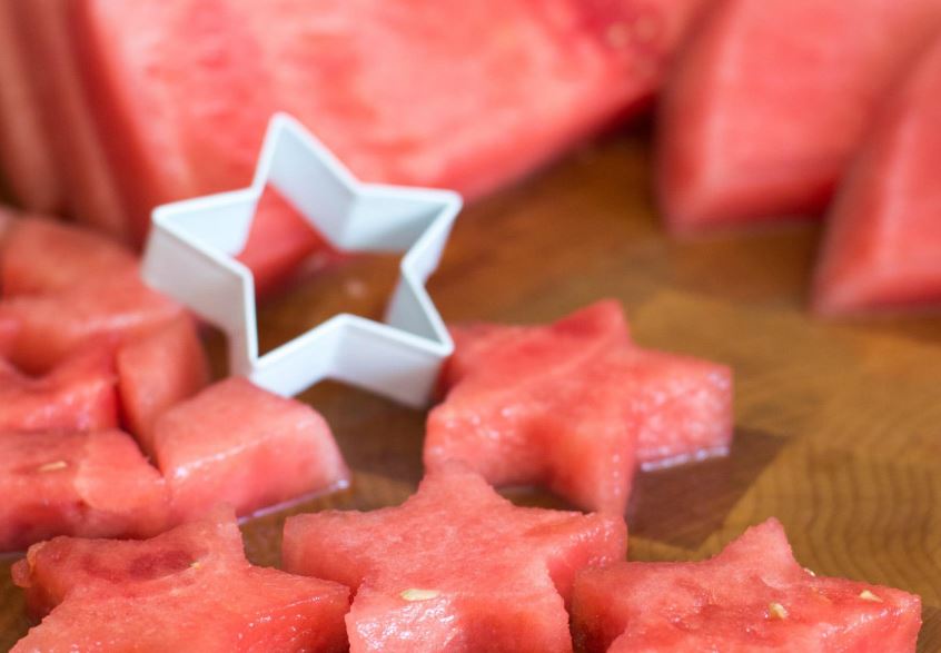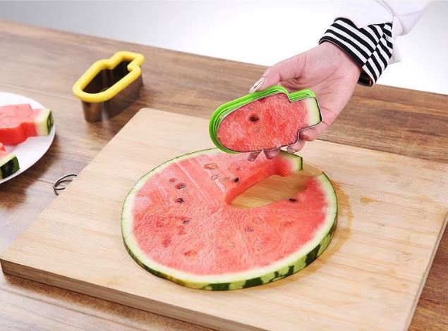 يمكن استخدم قوالب تقطيع البسكويت أو الكيك لتقطيع البطيخ بأشكال النجوم و الحيوانات .