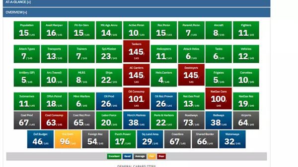 يعتمد تصنيف “Global Firepower” على أكثر من 60 عاملًا، منها: